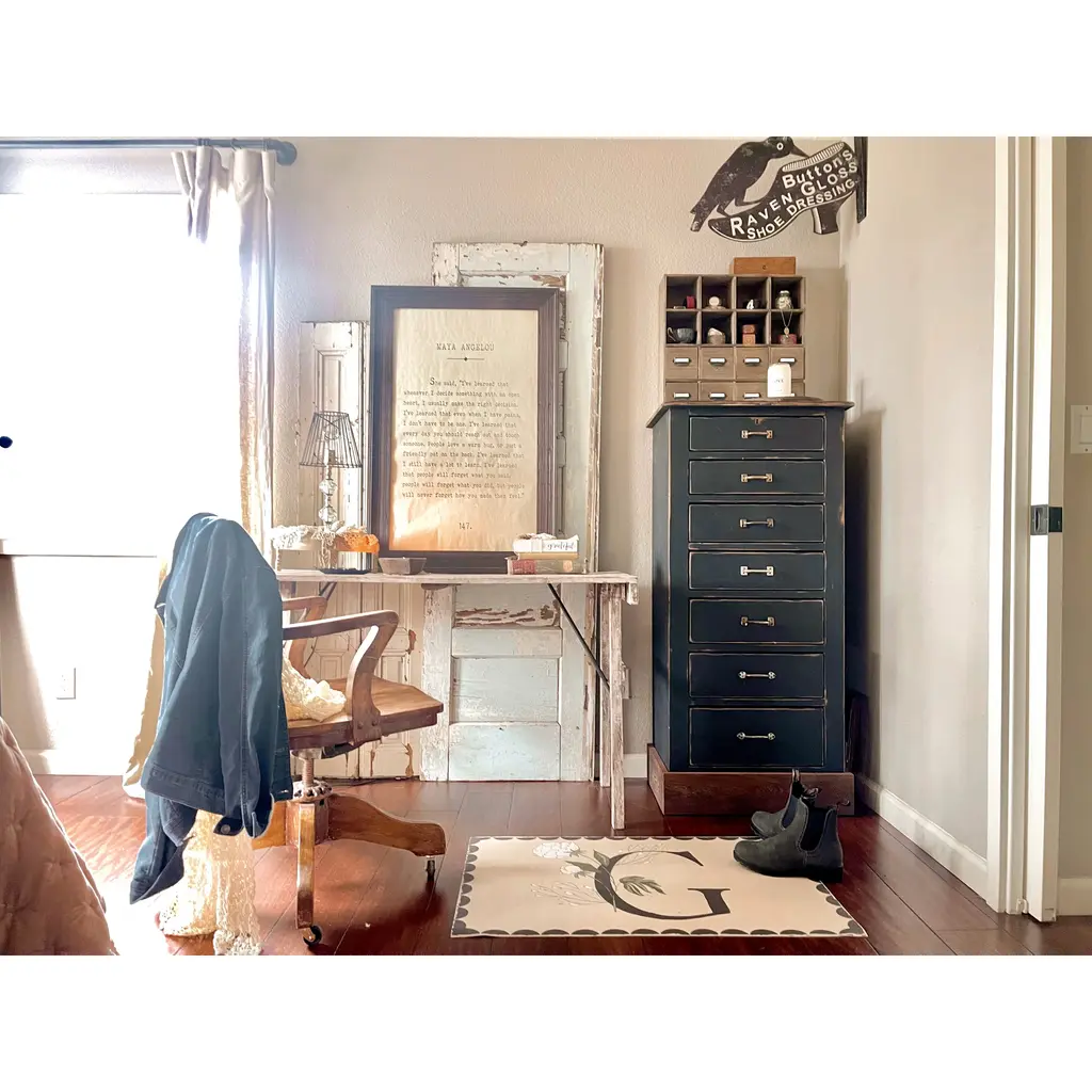 When there is a quote or passage that resonates, it's sometimes nice to have it as a daily reminder. It may have a positive effect on the quality of one's day. A simple chalkboard-like finish and weathered grey wood frame allows the focus to be on the message at hand. Choose your color background and frame style.