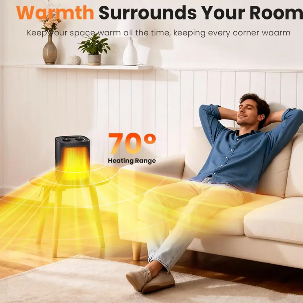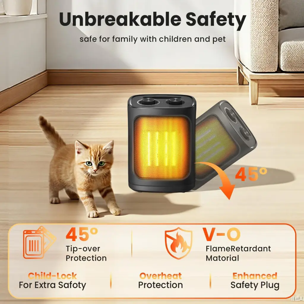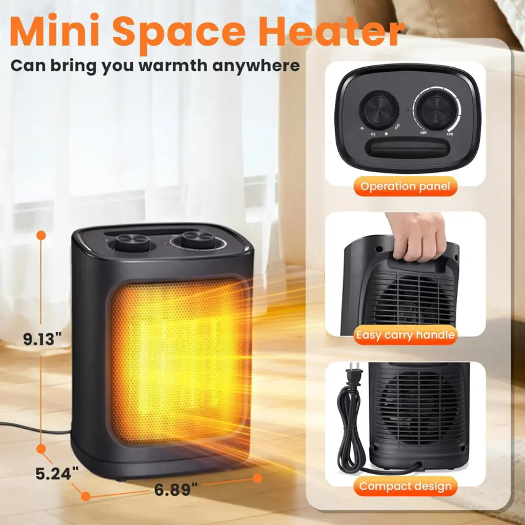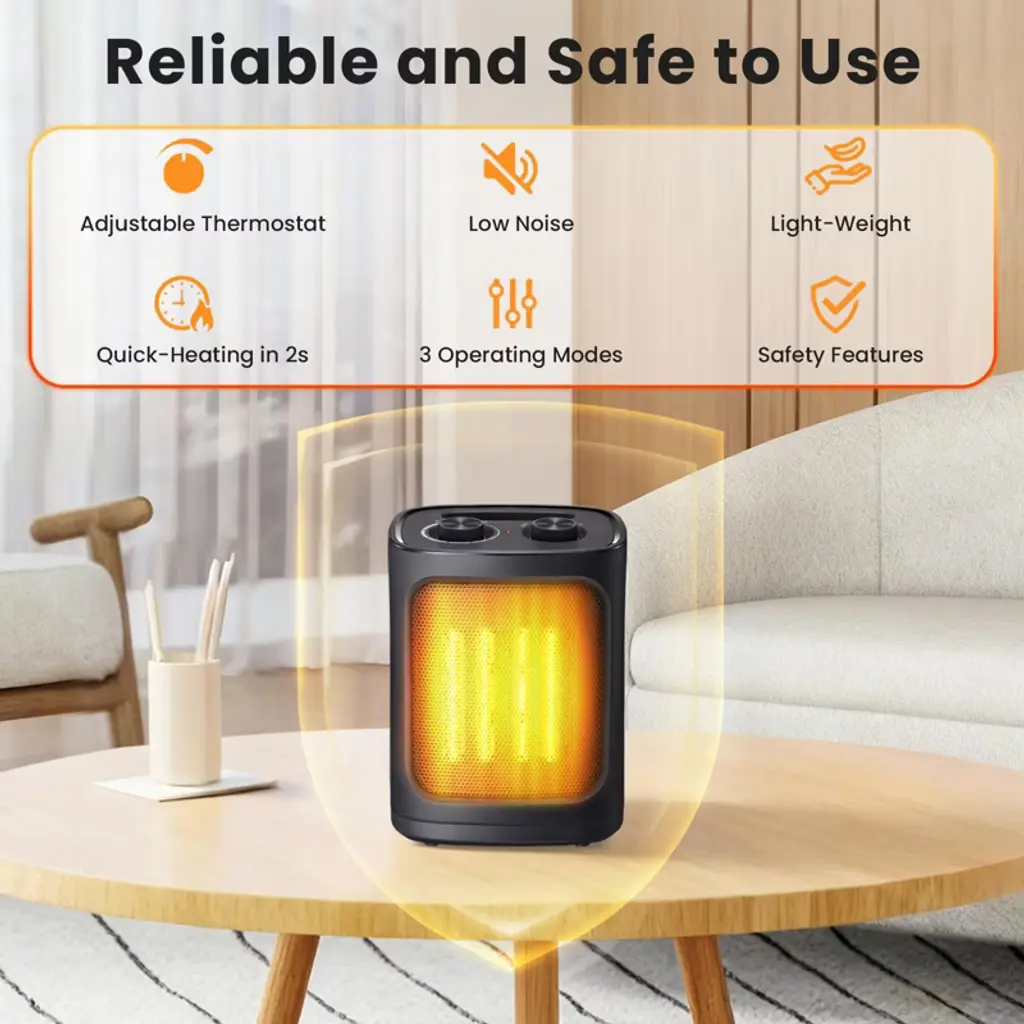 R.W. FLAME space heater comes with three settings: High Heat, Low Heat, and Fan Mode for cool air. It features an adjustable thermostat to keep your space at a comfortable temperature and allows you to manage the 1500-watt ceramic heating element. For safety, it includes tip-over and overheat protection, automatically shutting off if needed. Its lightweight and compact design makes it easy to use in various locations such as living rooms, bedrooms, or offices. Operating quietly at under 50 dB, it’s perfect for maintaining a peaceful environment without disturbing your activities.