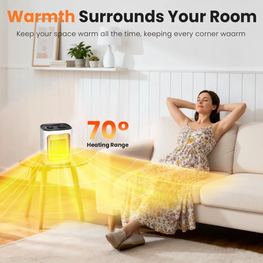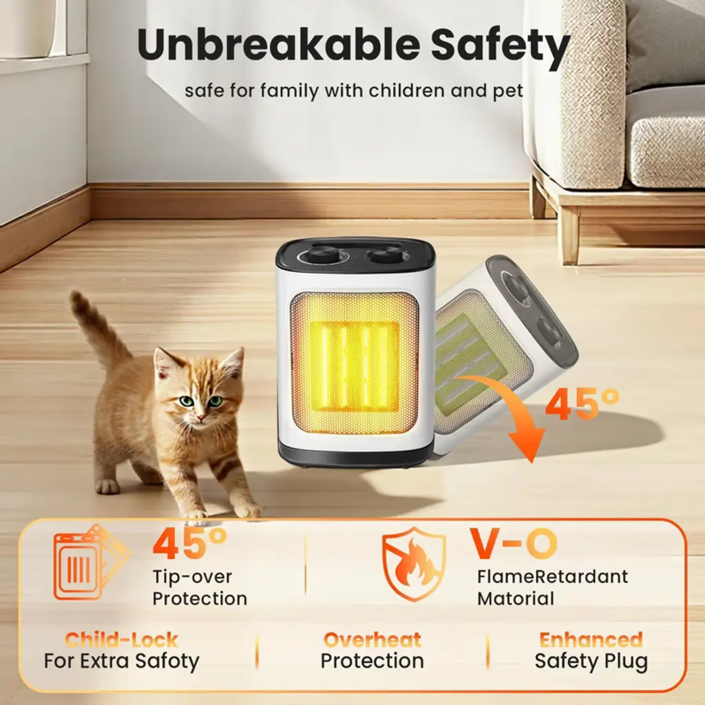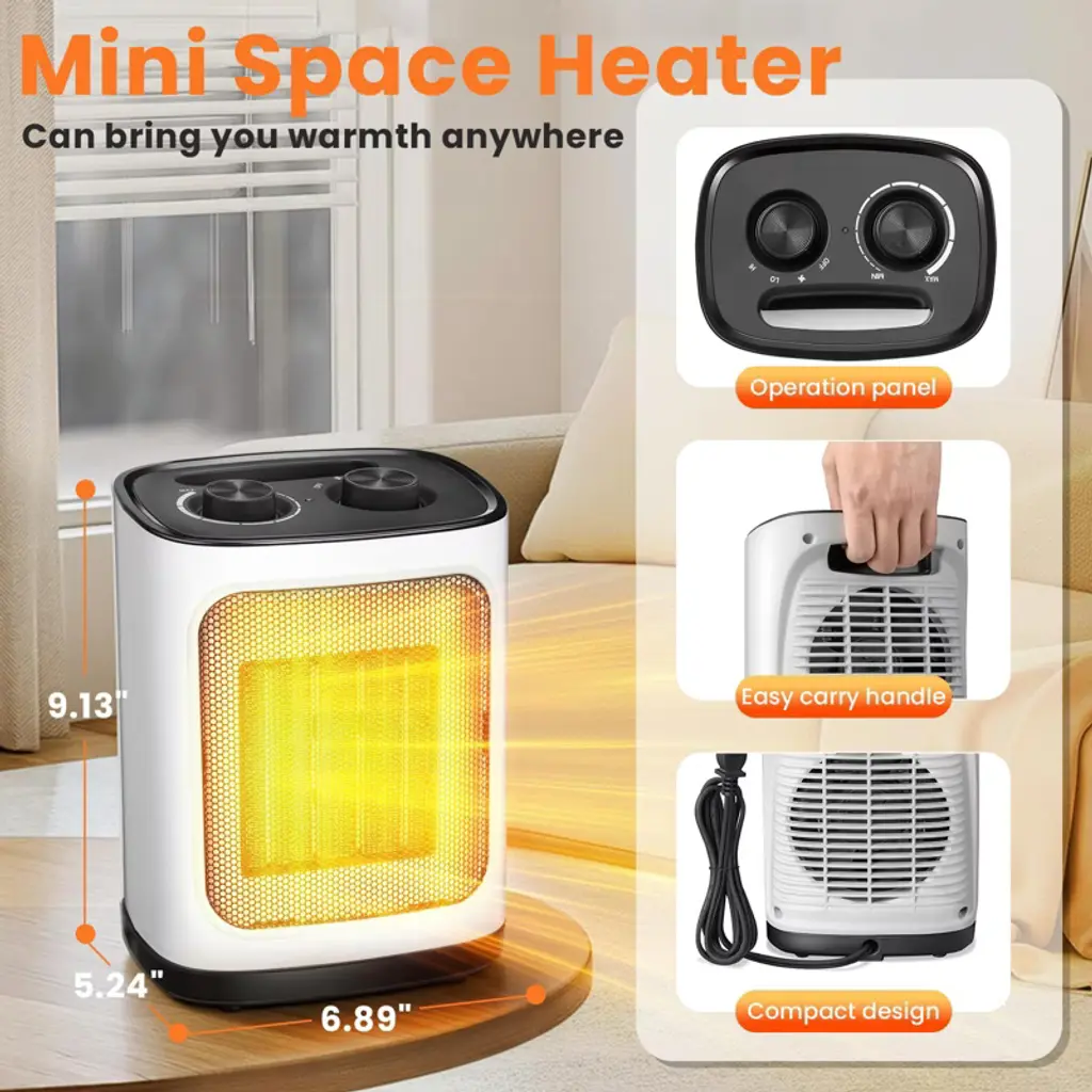 R.W. FLAME space heater comes with three settings: High Heat, Low Heat, and Fan Mode for cool air. It features an adjustable thermostat to keep your space at a comfortable temperature and allows you to manage the 1500-watt ceramic heating element. For safety, it includes tip-over and overheat protection, automatically shutting off if needed. Its lightweight and compact design makes it easy to use in various locations such as living rooms, bedrooms, or offices. Operating quietly at under 50 dB, it‘s perfect for maintaining a peaceful environment without disturbing your activities.
