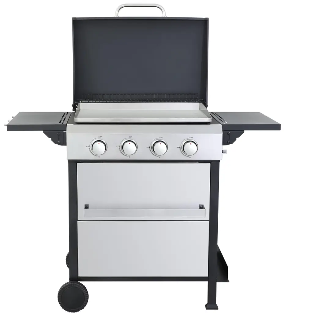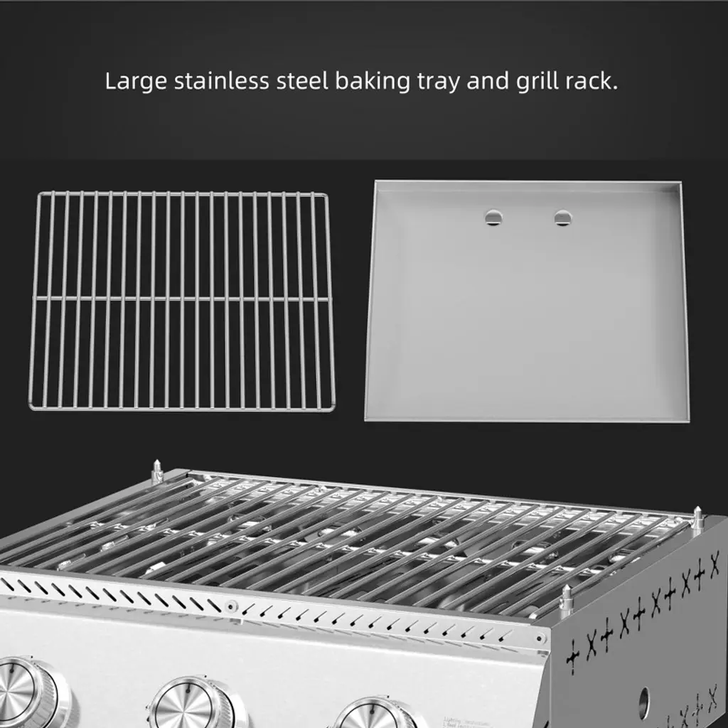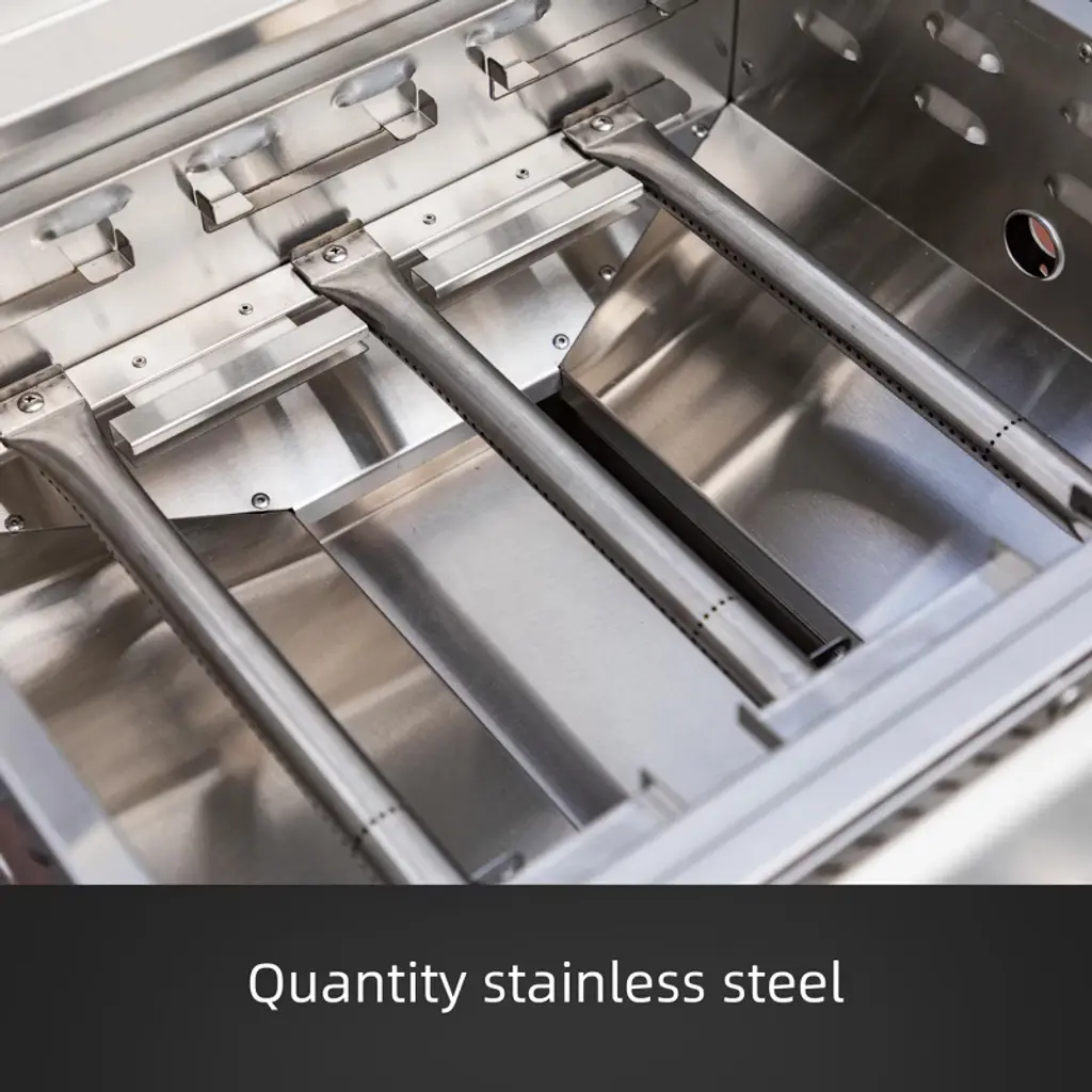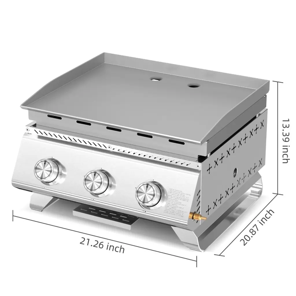 Crafted from premium stainless steel, this grill combines durability, performance, and convenience—ideal for camping, RV trips, picnics, and backyard BBQs. It features three powerful 304 stainless steel burners with independent controls, delivering up to 24,000 BTU for efficient, safe grilling. The thick, uncoated stainless steel griddle and enamel-coated heat diffuser ensure even heat and easy cleaning. Screw-secured legs provide stability, while a front-access grease tray simplifies cleanup. Compatible with both small and large propane tanks, it also includes a custom-fit cover for protection against dust and harsh weather.