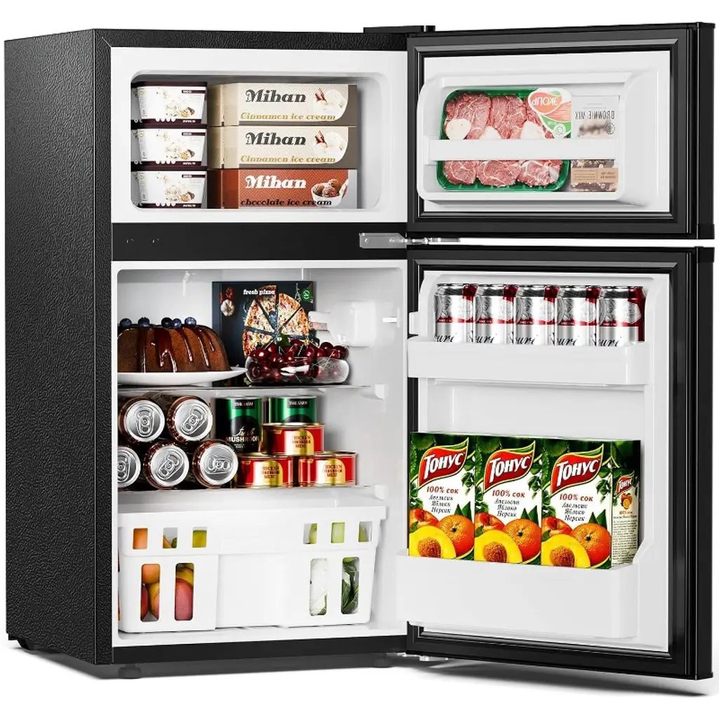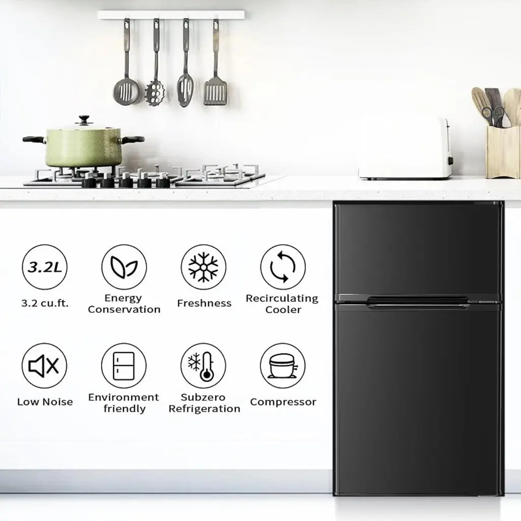 3.2 Cu.ft. Compact Mini Fridge With Freezer, 2-door Design, Adjustable Shelves For Dorm, Apartment, Office, And Basement, Black