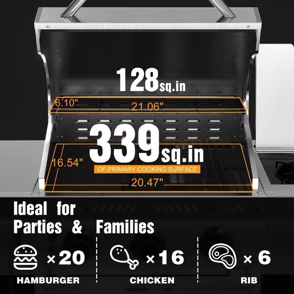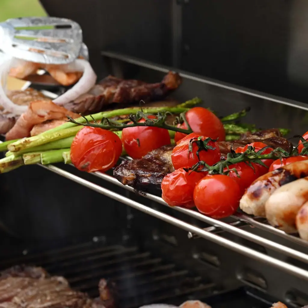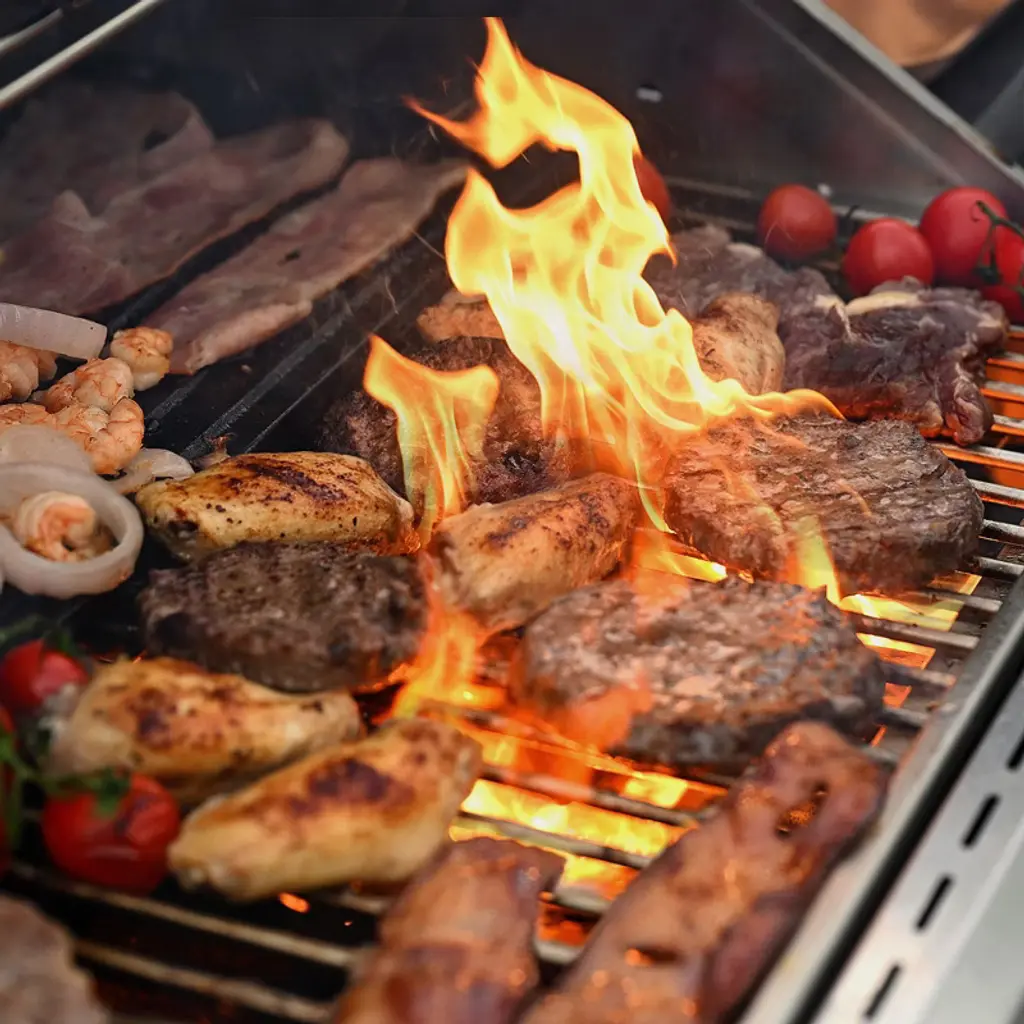 Experience professional grilling with this heavy-duty 34,000 BTU stainless steel BBQ featuring three 8,000 BTU main burners and a 10,000 BTU side burner. The durable 201 stainless steel construction resists rust while the pulse ignition ensures quick starts. Enjoy spacious 565x410mm grilling with included cast iron tray, plus convenient warming rack and tool storage. Moves easily on lockable wheels. Backed by 2-year warranty.
