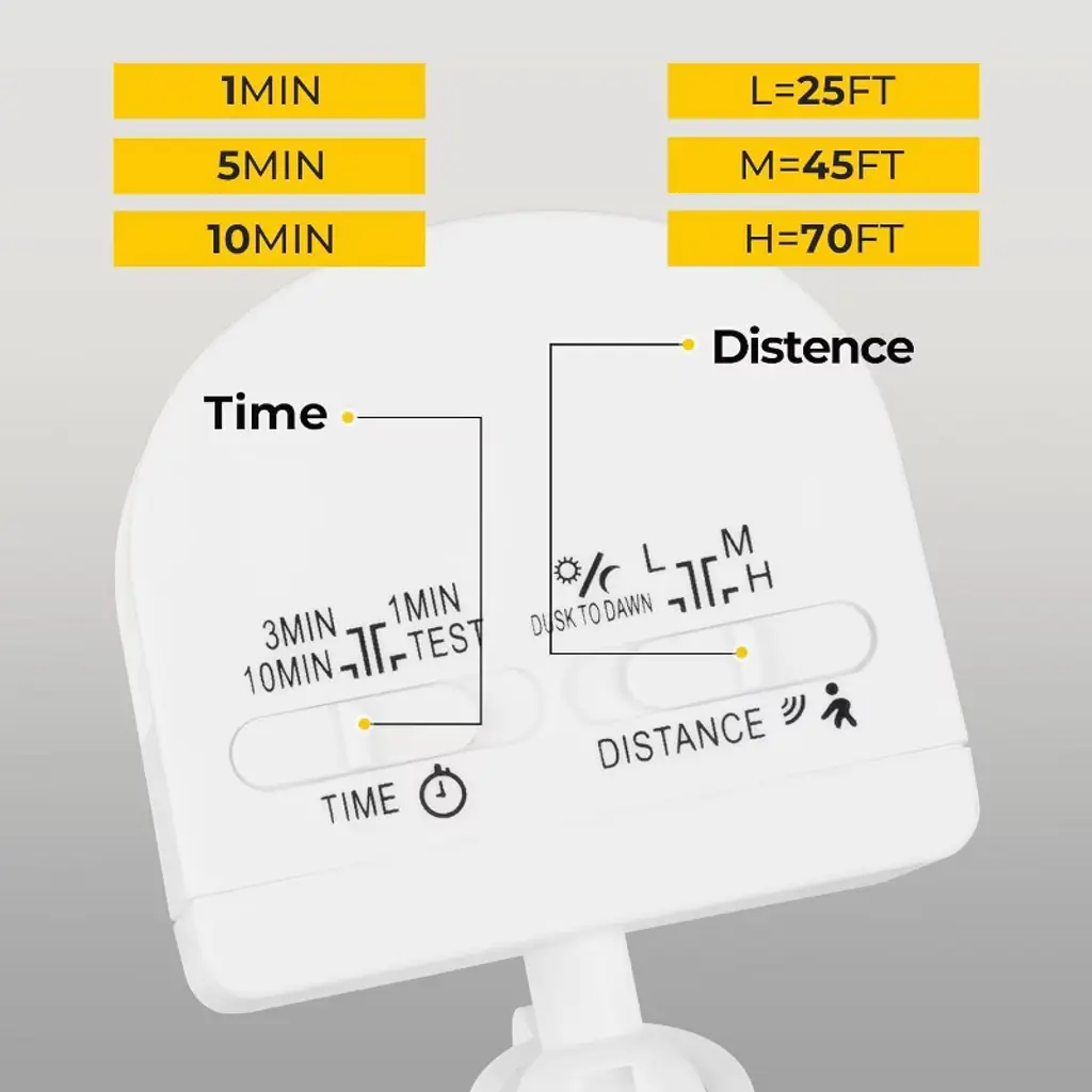 This LED motion sensor light features 4 lighting modes: Test Mode, Motion Mode, Always On Mode, and Dusk to Dawn Mode. You can adjust both the light duration and detection range. In Motion Mode, when motion is detected within the range and outdoor brightness is below 20 lux, the light stays on for 1, 5, or 10 minutes before turning off and returning to motion detection mode after 3 seconds. There are 4 lighting durations to choose from: 1, 5, or 10 minutes, while in Test Mode, the light stays on for 5 seconds regardless of ambient light. Always On Mode keeps the light continuously on. The sensor allows for 3 detection distances: High (up to 70 feet), Medium (up to 45 feet), and Low (up to 25 feet), and can be triggered by people, vehicles, or animals. The energy-saving LED outputs 50W, 5500 lumens, and 5000K brightness (daylight white), equivalent to a 234W halogen light, reducing energy consumption by up to 90%. Its metal construction includes 160 adjustable heads, and it's waterproof, making it durable with a lifespan of 50,000 hours ideal for various outdoor settings such as backyards, front doors, garages, and walkways.