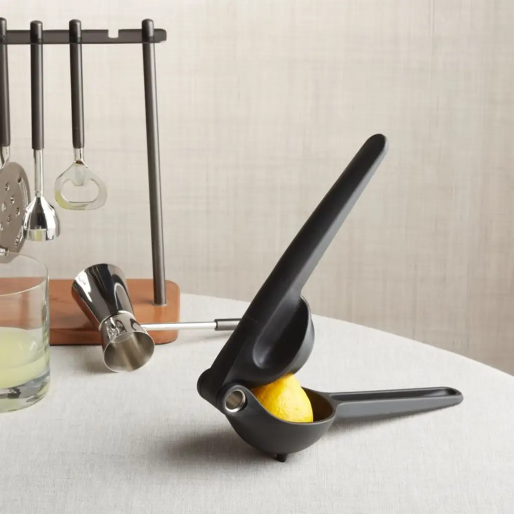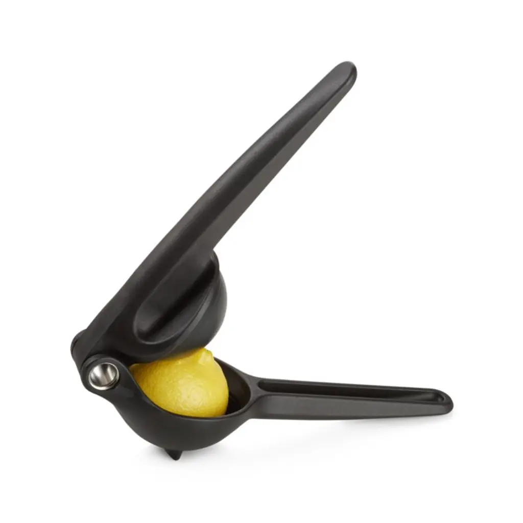 Indispensable for the bar or kitchen, this hand-held juice easily extracts juice from fresh lemons and limes. Place half of a lemon or lime in the juicer, squeeze the handles together, then reopen the handles to conveniently release the spent rind. Neatly and quickly squeeze fresh citrus juice for a morning glass of juice or a zesty evening cocktail. The sturdy nylon and stainless steel juicer comes apart for easy cleaning.Looking for kitchen gadgets to simplify the cooking process? Check out our guide on the top must-have kitchen gadgets.