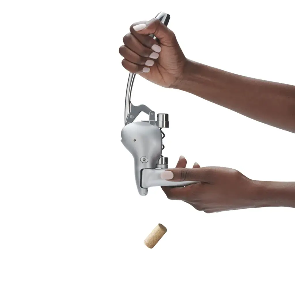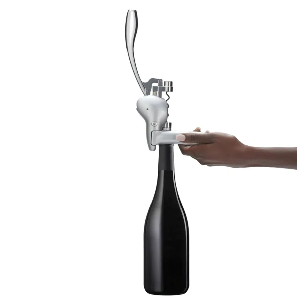 Effortlessly open each and every bottle of wine! The original corkscrew uncorks any size bottle of wine in just 3 seconds. Thie wine opener's modern design and superior performance makes it and essential addition to any modern home bar or kitchen. This wine opener includes a foil cutter, and an extra non stick coated spriral.