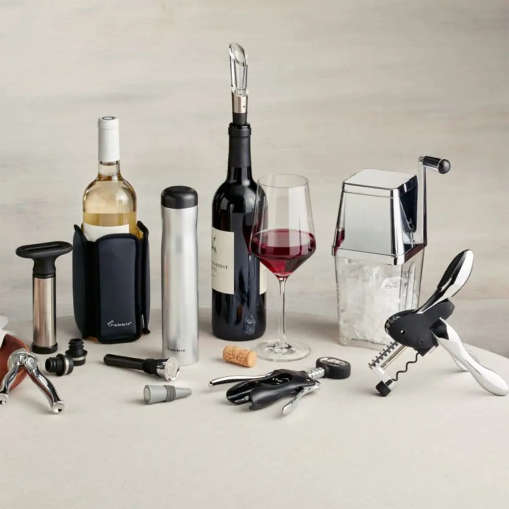 Foolproof and efficient, the winged corkscrew is a bar essential. Simply position the opener over the bottle, twist the handle to insert the auger into the cork and raise the opener's wings. Using both hands, push the wings down. To remove the cork from the spiral, squeeze the sides against the cork and turn the handle counter-clockwise.