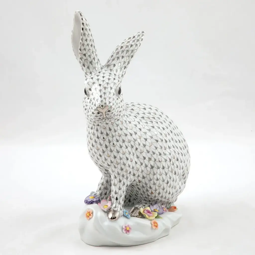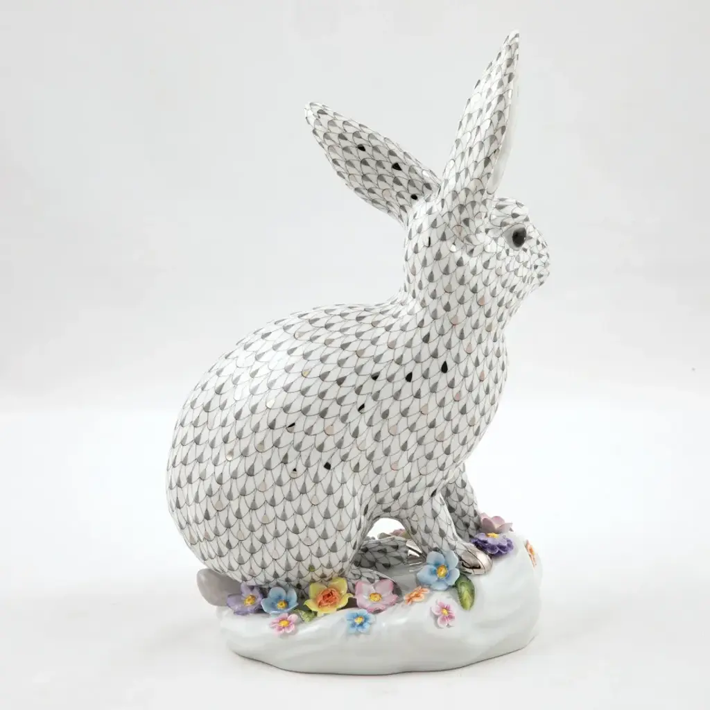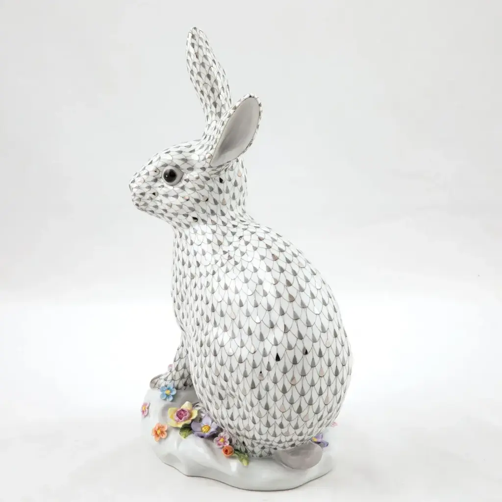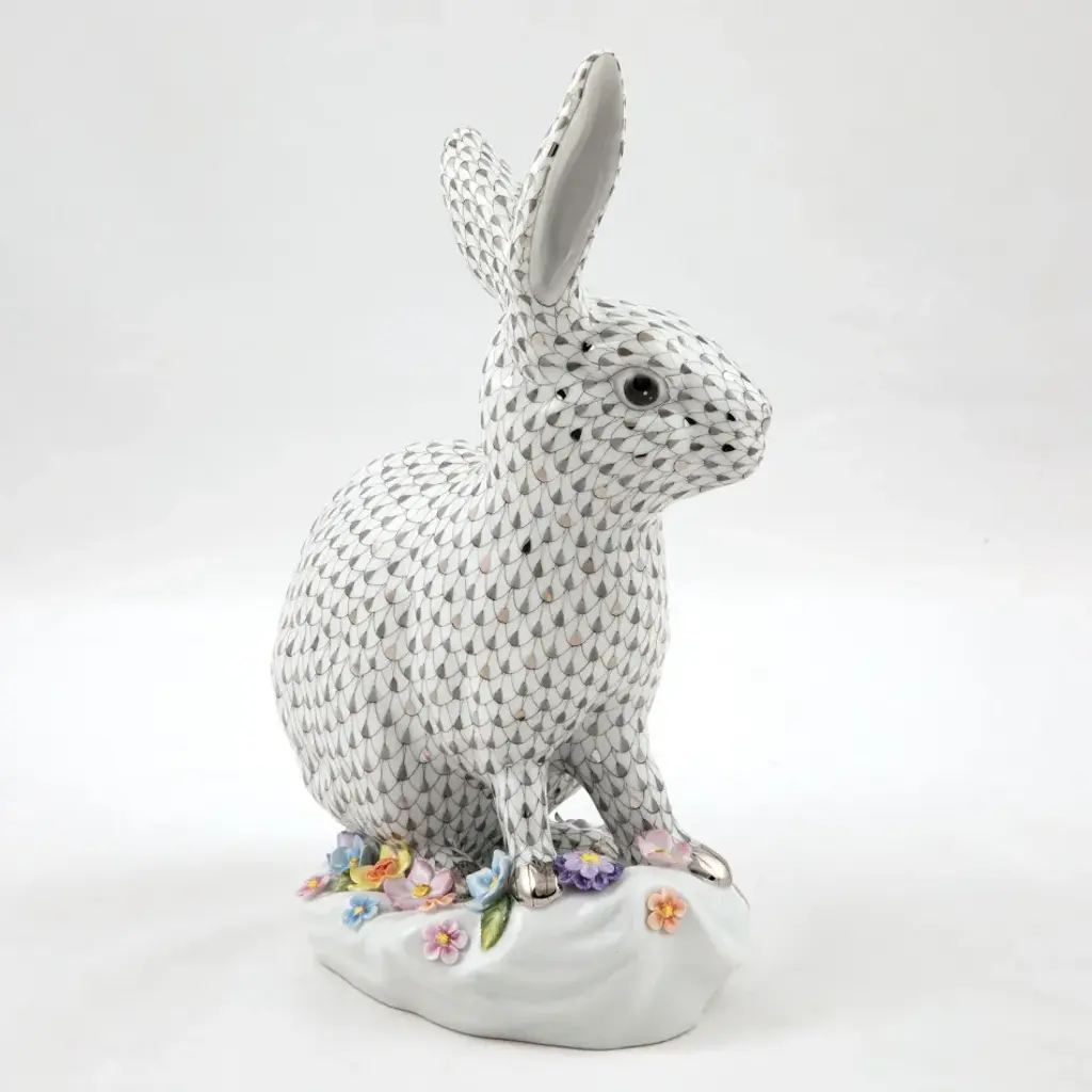 Limited Edition Size = 150 An exquisitely sculpted bunny, so lifelike one keeps anticipating a twitch or an exhale, rests among a sea of hand-molded flowers. From a simple piece of clay, talented hands roll, pinch, and combine layer upon layer to create meticulous, delicate blossoms. Exhibiting the unrivaled artistry of Herend, the resulting vignette is so realistic even mother nature herself might be fooled. Now the biggest porcelain manufactory in Europe, Herend was founded in 1826 to produce earthenware in the small Hungarian village for which it was named. At the time, Hungary was flooded with low-cost pottery, but in 1839, Mor Fischer became the Manufactory’s new owner and he decided to focus on producing dinnerware replacement pieces for Europe’s royal families to complement their valuable porcelain patterns from Germany and the Far East. As his client base grew, Fischer commissioned his artists to begin designing dinnerware patterns of their own. Queen Victoria’s 1851 purchase of a large set for Windsor Castle was a milestone, setting the stage for aristocrats throughout Europe to clamor for Herend in their estates. In the 1850s, Herend added meticulously-crafted figurines to its creations. Herend’s trademark fishnet pattern, which is widely recognized and prized as Herend’s signature design, started in 1858 when an artist who was intrigued with a Chinese plate’s fish scale design painted it onto a rooster figurine to imitate feathers.