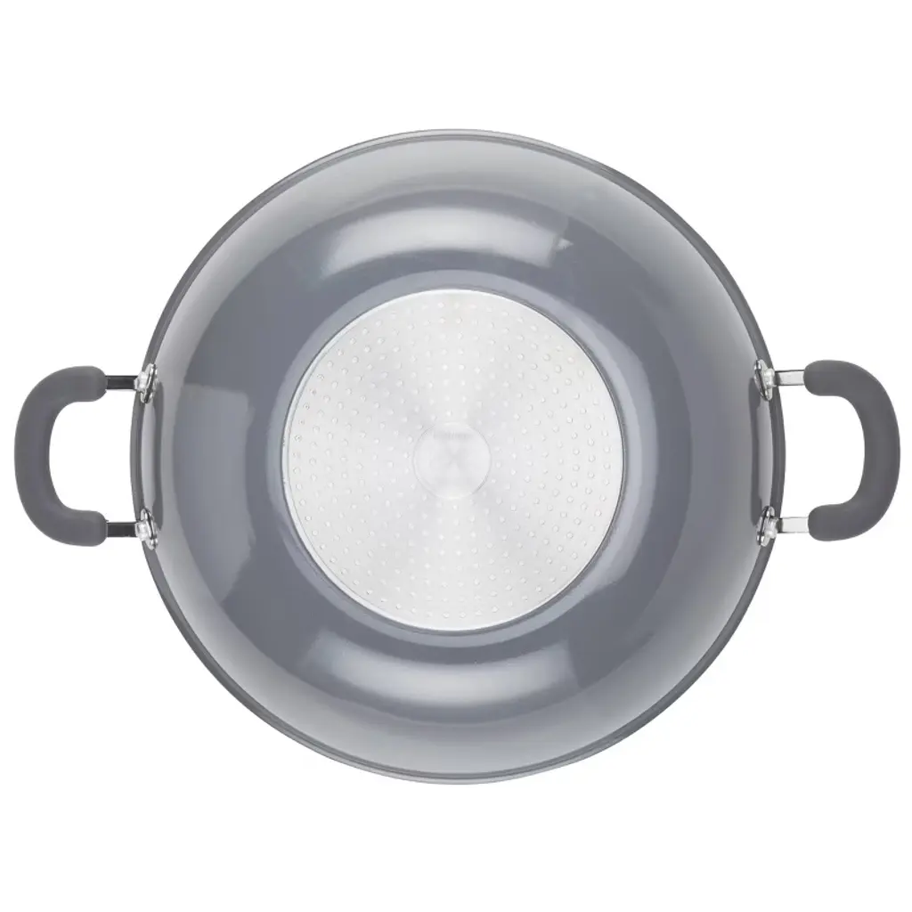 Get ready to wok and roll with the radiant and solution-oriented Rachael Ray Create Delicious Aluminum Nonstick Wok. Featuring vibrant, shimmering color combined with functionality, this versatile wok features durable aluminum construction for ultra-even heating. The enhanced PlatinumShield Technology silver nonstick is reinforced to be 9X harder than titanium for effortless food release. Colorful, dual-riveted stainless steel and silicone handles provide comfort and control while cooking. Flared rims make for easy pouring, and an induction-compatible stainless steel base provides strength, durability, and versatility to use on any cooktop. Plus, the pan is dishwasher safe for quick and easy cleanup. Oven safe to 400°F.