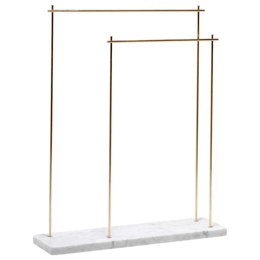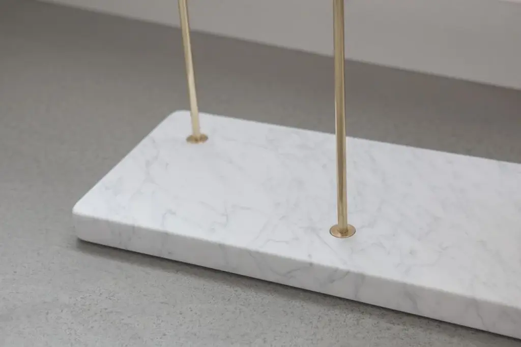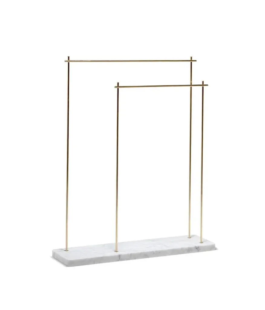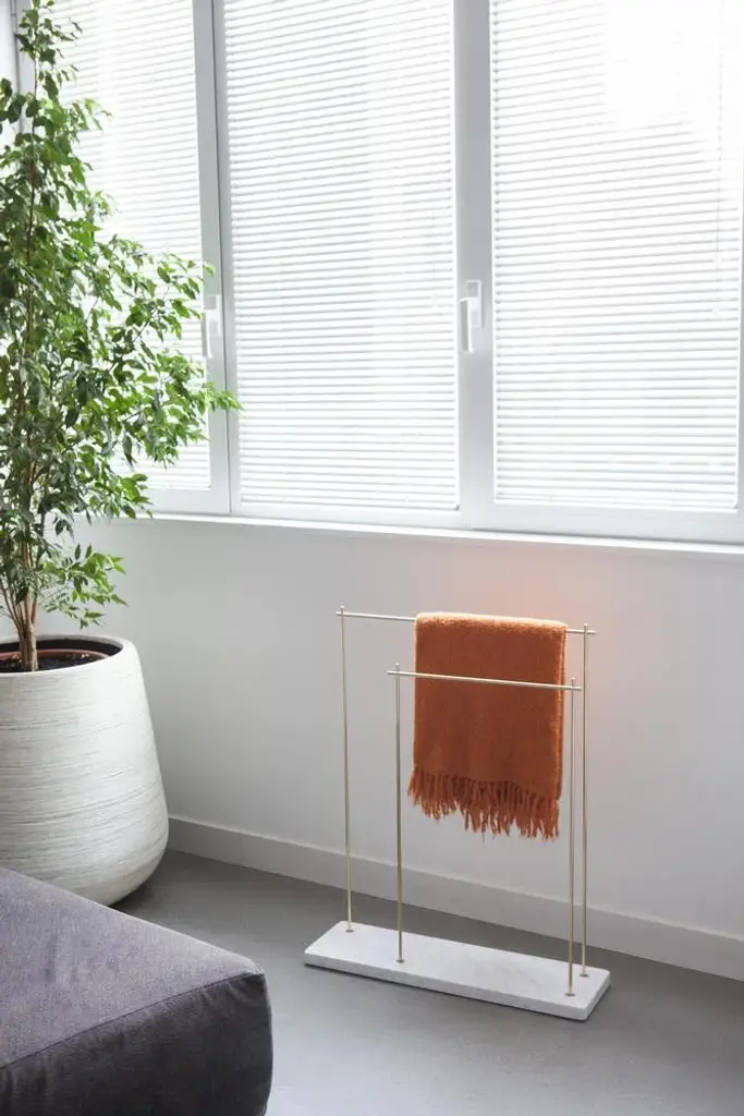 A sylish blanket holder or a luxury towel rack. Made with Carrara marble and solid brass bars.