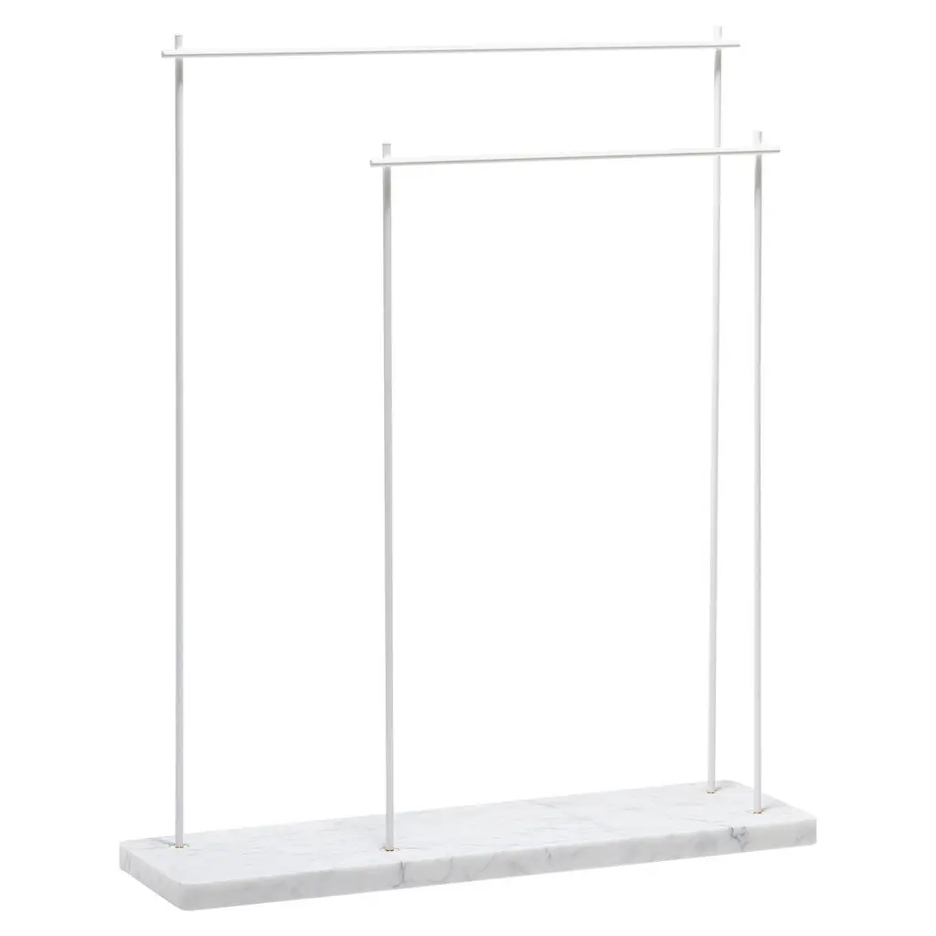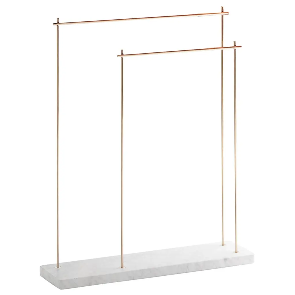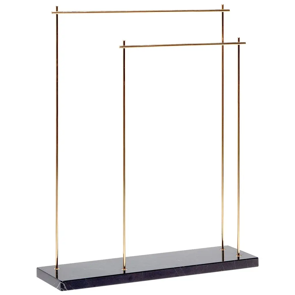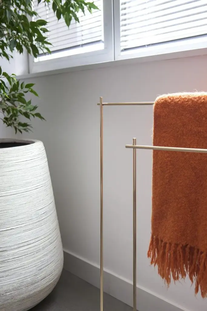 A sylish blanket holder or a luxury towel rack. Made with Carrara marble and solid brass bars.
