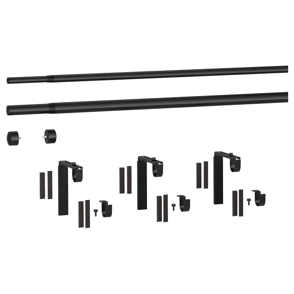 RÄCKA / HUGAD Double curtain rod combination - black 47 1/4-82 5/8 ". You can combine two layers of curtains, one thick and one thin, using the double rod. The length is adjustable. All parts are sold as separate articles in IKEA stores.
