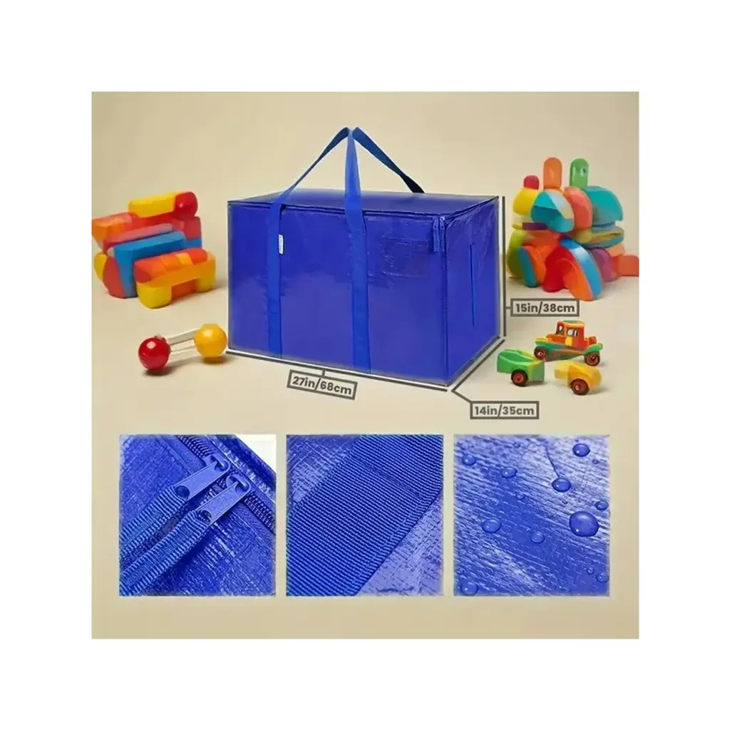 Extra Large: 27'' x 14'' x 15'' and up to 24 Gallon volume, an alternative for moving box and organizer, holiday storage bag. Waterproof, ideal for space saving, moving, camping?? Heavy-Duty: Made with premium PE material with wide and thick carrying handles surround the luggage/bag, giving the moving bags much more strength to hold heavier loading than stitched handles?? Open Top: The top side of the storage bag can be fully opened and it is much easier to organize, load and unload clothes, books, or anything that you want to put in?? Easy Storage: Foldable materials, just fold and put them away into shelves, or anywhere, they will take no much space to store when not in use?? Tag Pocket: A tag pocket is on the top-right corner with which you can mark your luggage for easier recognizing