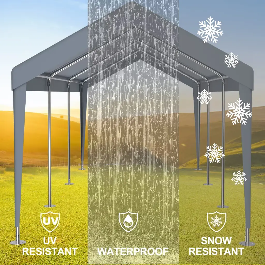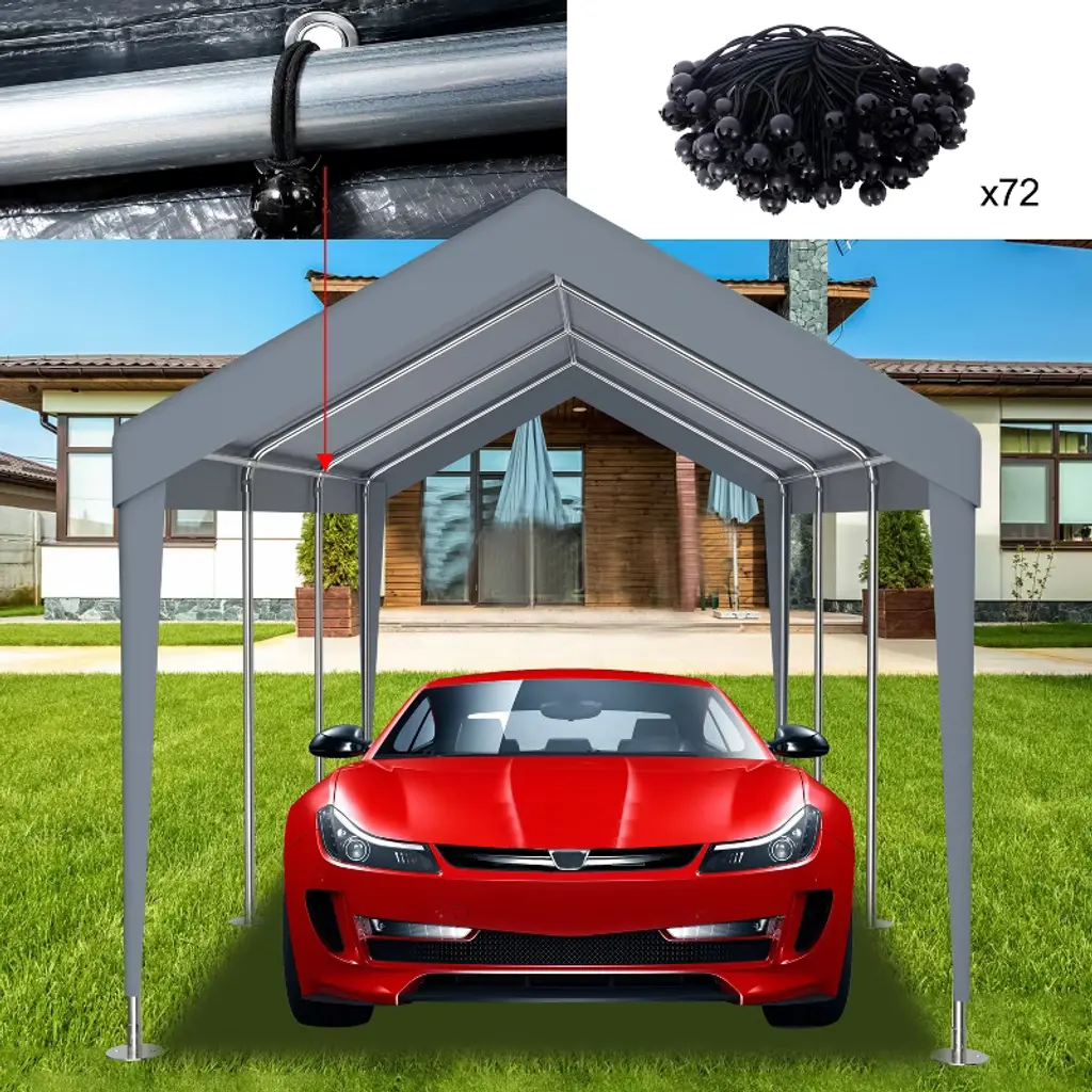 Racxily 10x20ft Carport Replacement Canopy Cover, Waterproof&uv Protected Tarp With 72 Elastic Buckles For Garage Shelter, Grey (Only Cover)