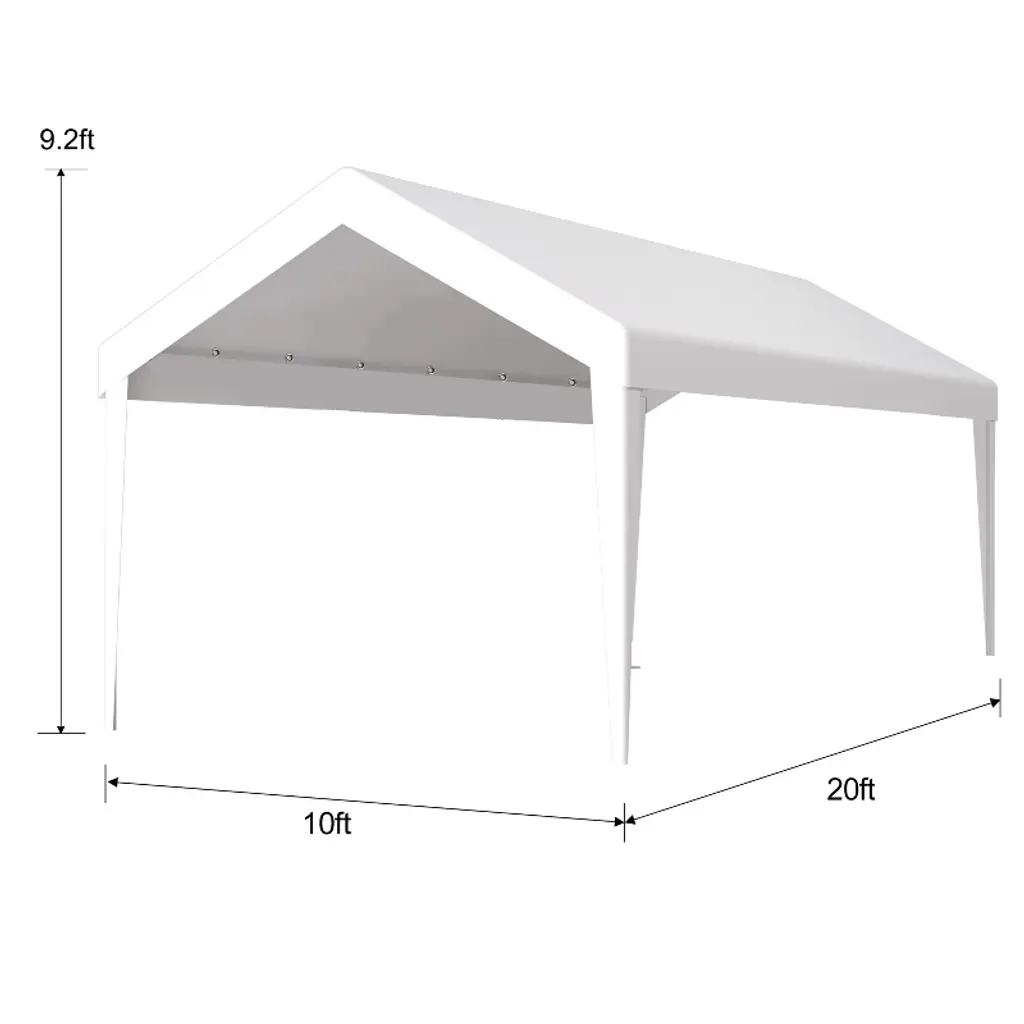 PREMIUM MATERIAL ¨C Crafted from high-quality PE fabric with a triple-layer construction, this replacement canopy provides excellent protection against wind, snow, and UV rays. It¡¯s a cost-effective solution that offers superior durability compared to replacing the entire garage structure. SECURE FIT ¨C Equipped with 72 premium elastic buckles, the canopy cover ensures a snug and secure fit for 10x20 ft carports. The elastic ropes effortlessly stretch to keep the cover tightly fastened, even in harsh weather conditions, guaranteeing reliable, long-lasting protection. ENHANCED EDGE REINFORCEMENT ¨C The reinforced rim around the grommets strengthens stability and prevents tearing. This thoughtful design ensures the tarp withstands severe weather conditions, offering a stable and durable protection solution for your vehicle. EASY INSTALLATION & STORAGE ¨C Installing the replacement cover is quick and easy with the included rubber band ball¡ªno extra tools needed. When not in use, simply fold the cover for compact storage, making it a practical, space-saving solution. VERSATILE USAGE ¨C This carport canopy is versatile and perfect for various outdoor settings, whether you¡¯re parking multiple vehicles, sheltering outdoor equipment, or providing shade for events at home, on construction sites, or in campgrounds. Its adaptability makes it a smart choice for all kinds of outdoor needs.
