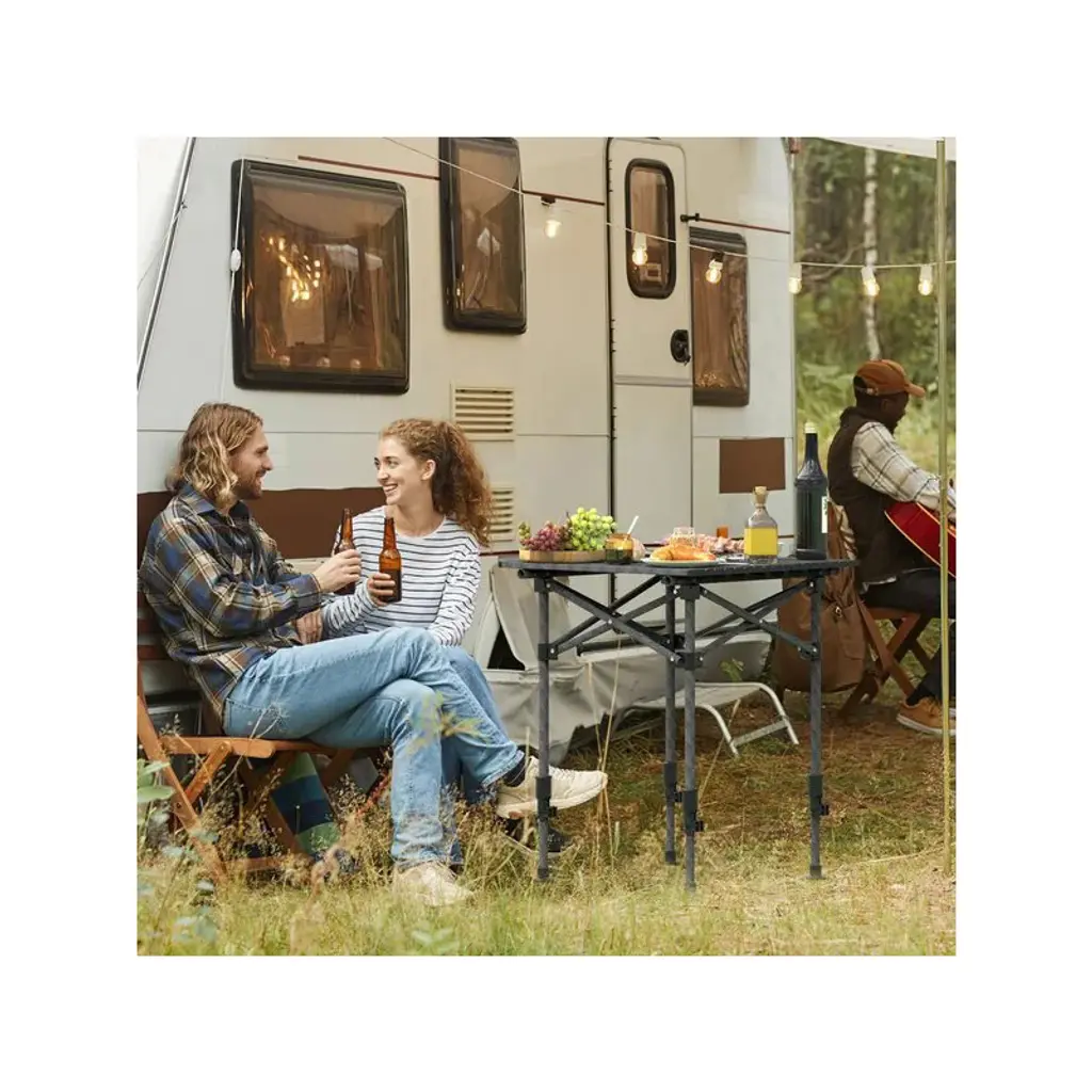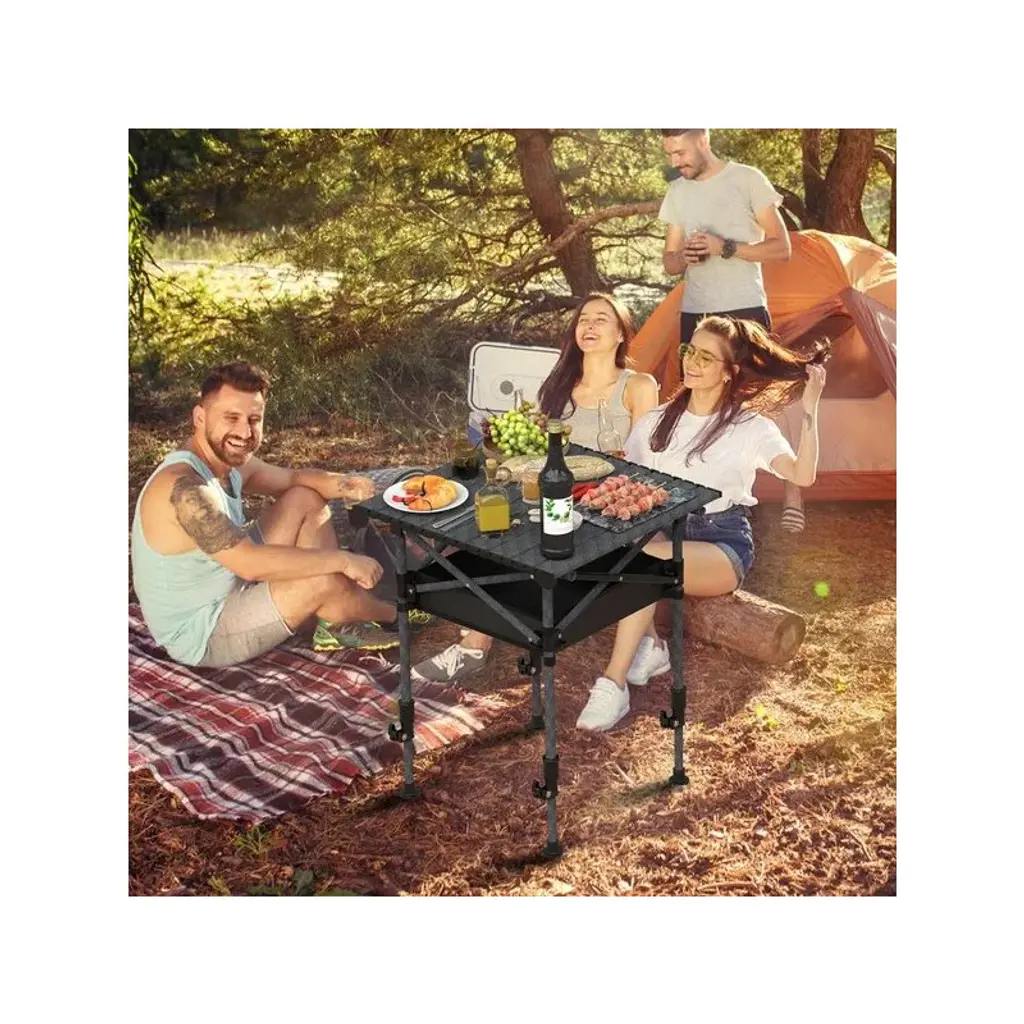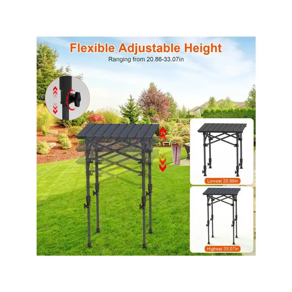 Racxily 20x20" Portable Folding Camping Table W/ Adjustable Height, Rustproof Carbon Steel Foldable Roll-up Camping Table For Picnic Camping Hiking