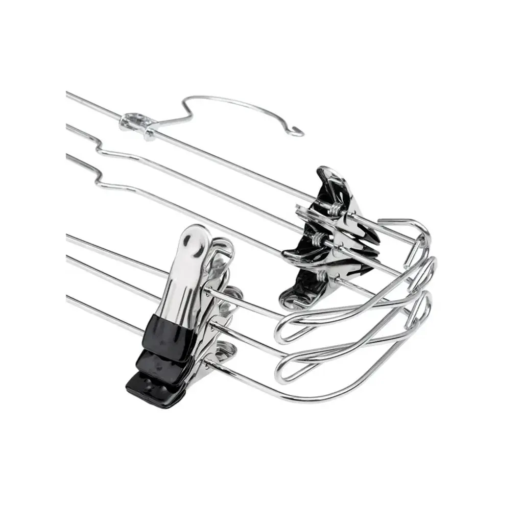Introducing our innovative 6-tier metal skirt hanger! It's designed to make organizing your closet easier. With its space-saving design, it saves room while keeping things tidy. Plus, it folds up neatly when not in use. You can adjust the clips to fit different clothes like skirts, tank tops, or dresses securely. Made from strong alloy steel with a stylish chrome finish, it's built to last. And it's not just for clothes ¨C you can use it for towels or kitchen linens too. Say goodbye to clutter with our versatile and durable hanger!
