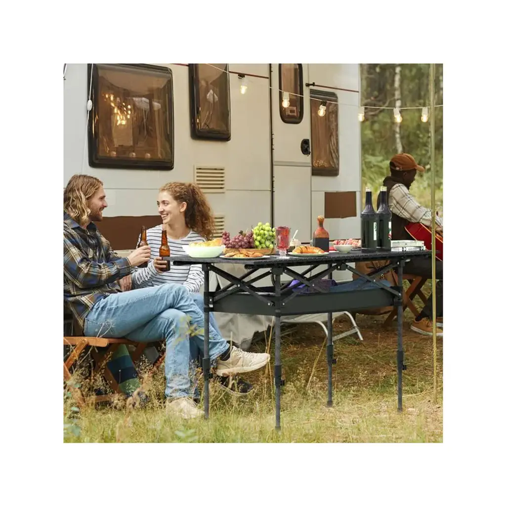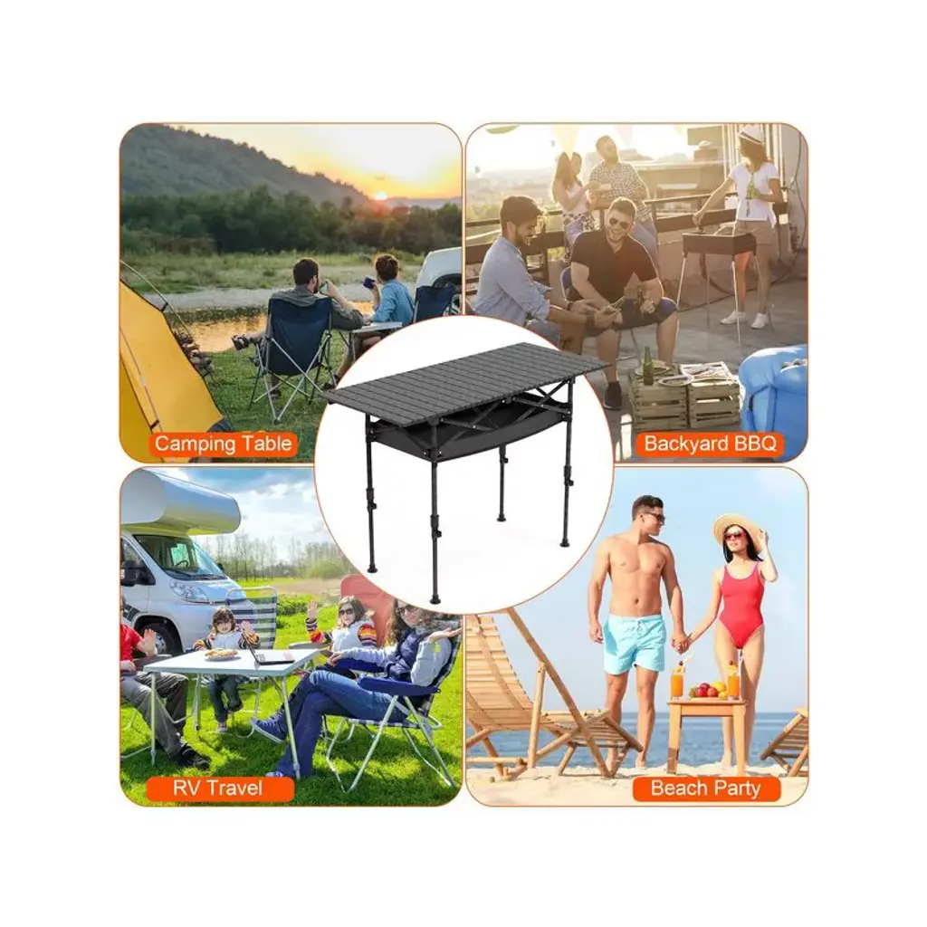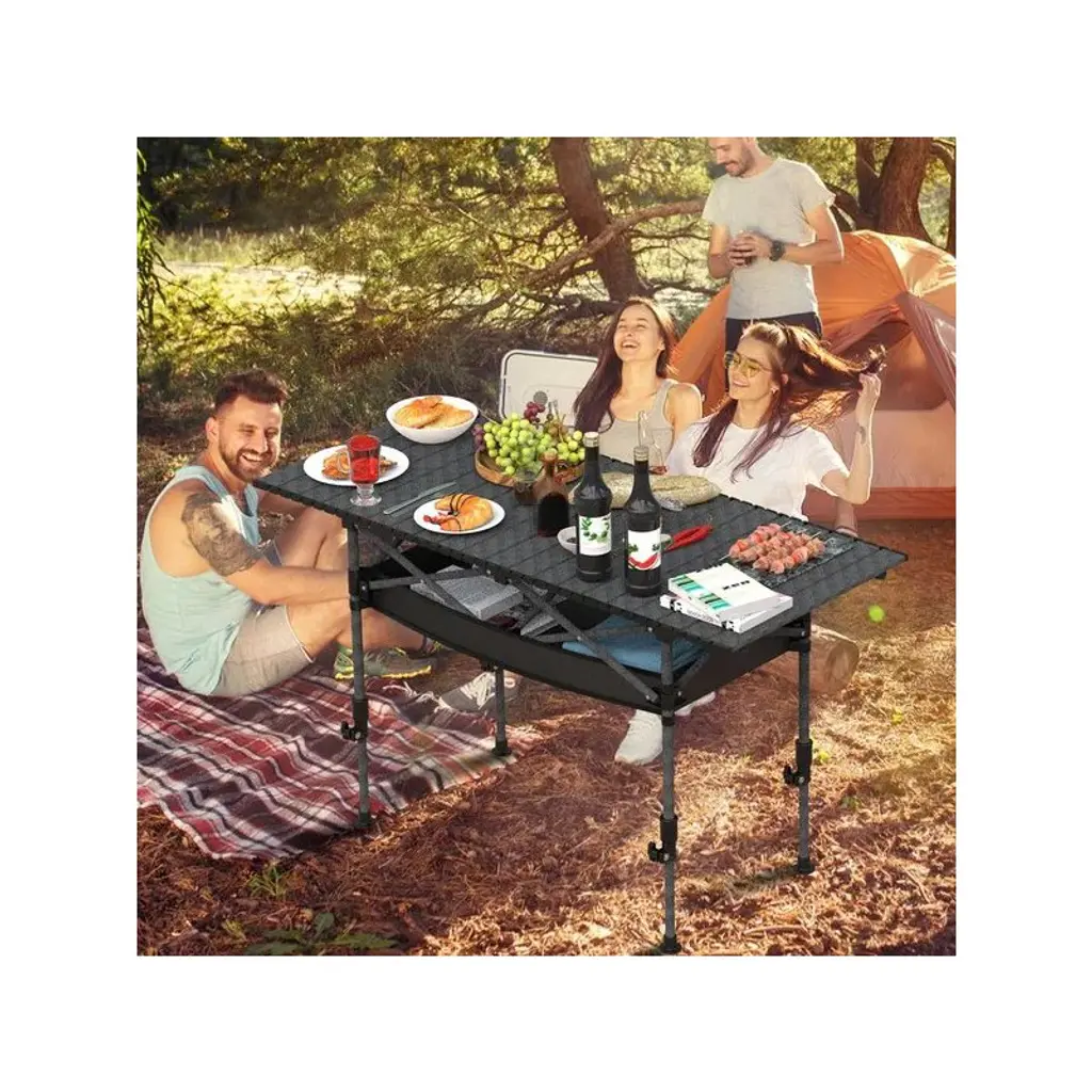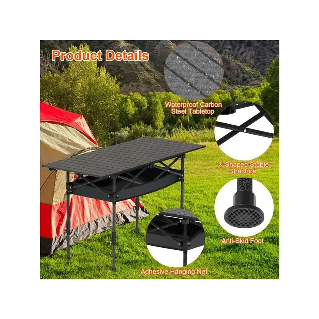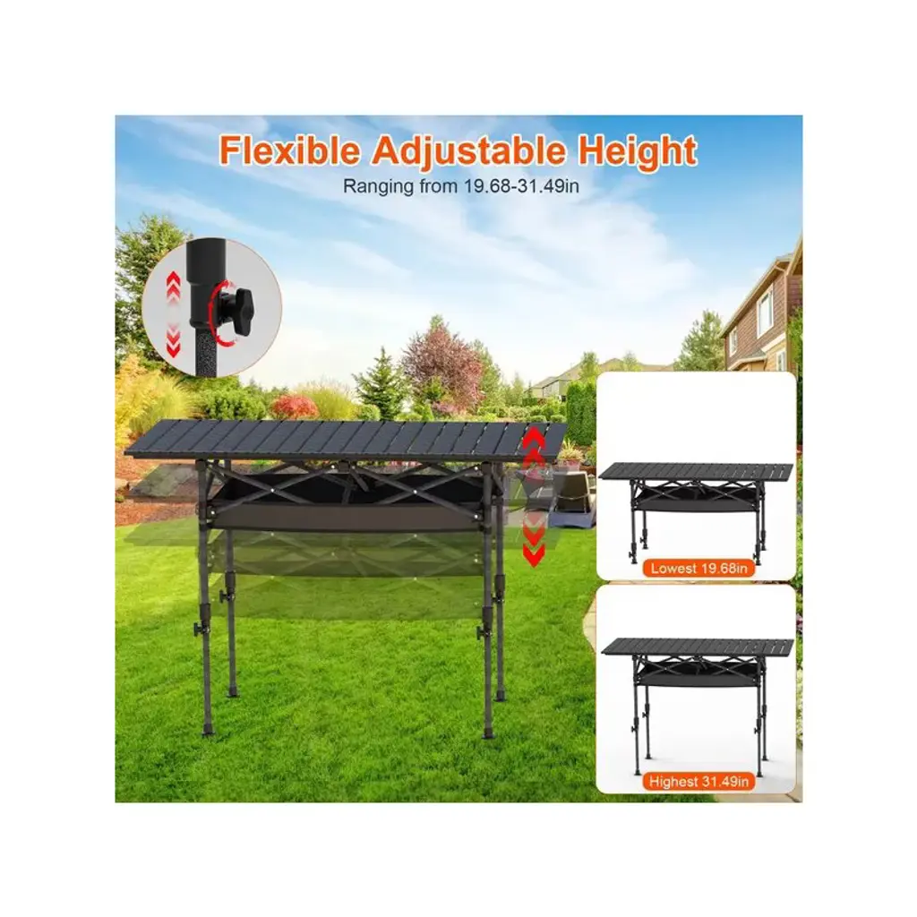 Racxily 47x21" Portable Folding Camping Table W/ Adjustable Height, Rustproof Carbon Steel Foldable Roll-up Camping Table For Picnic Camping Hiking