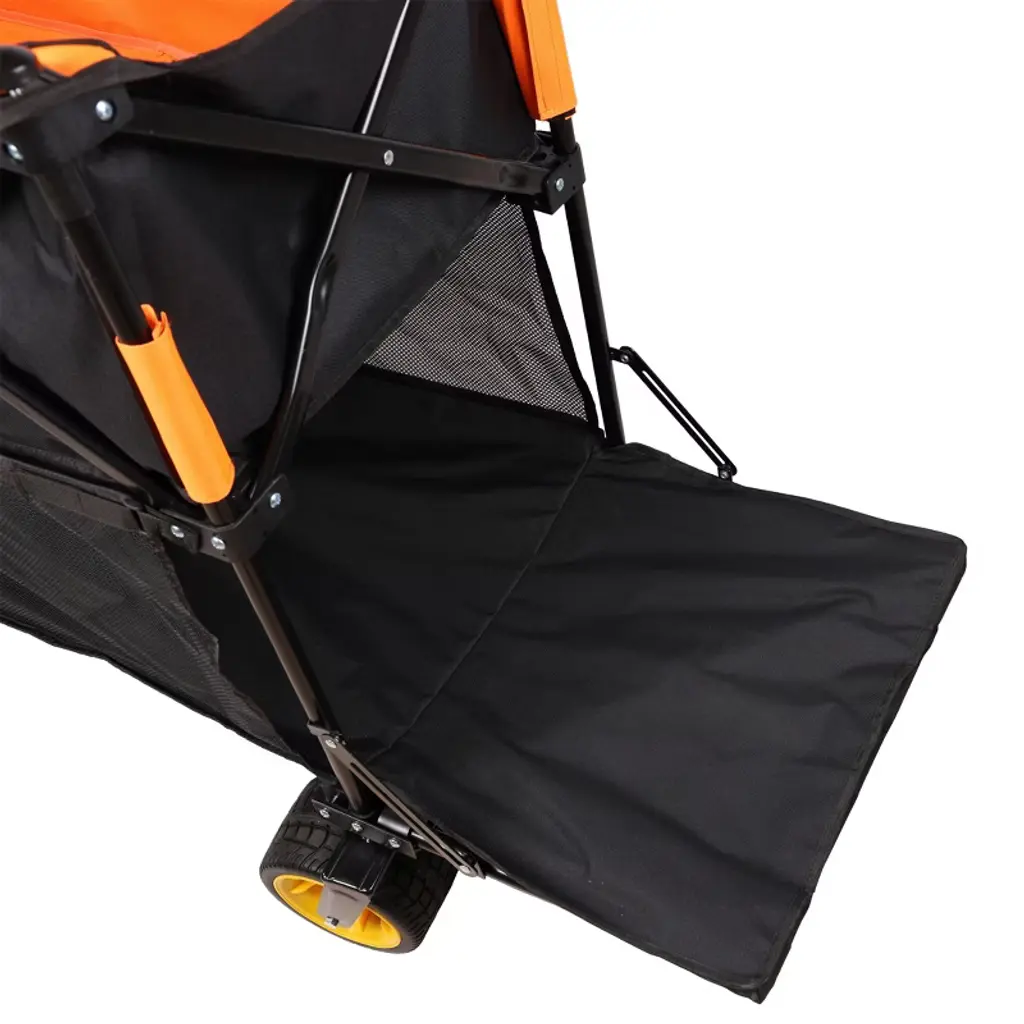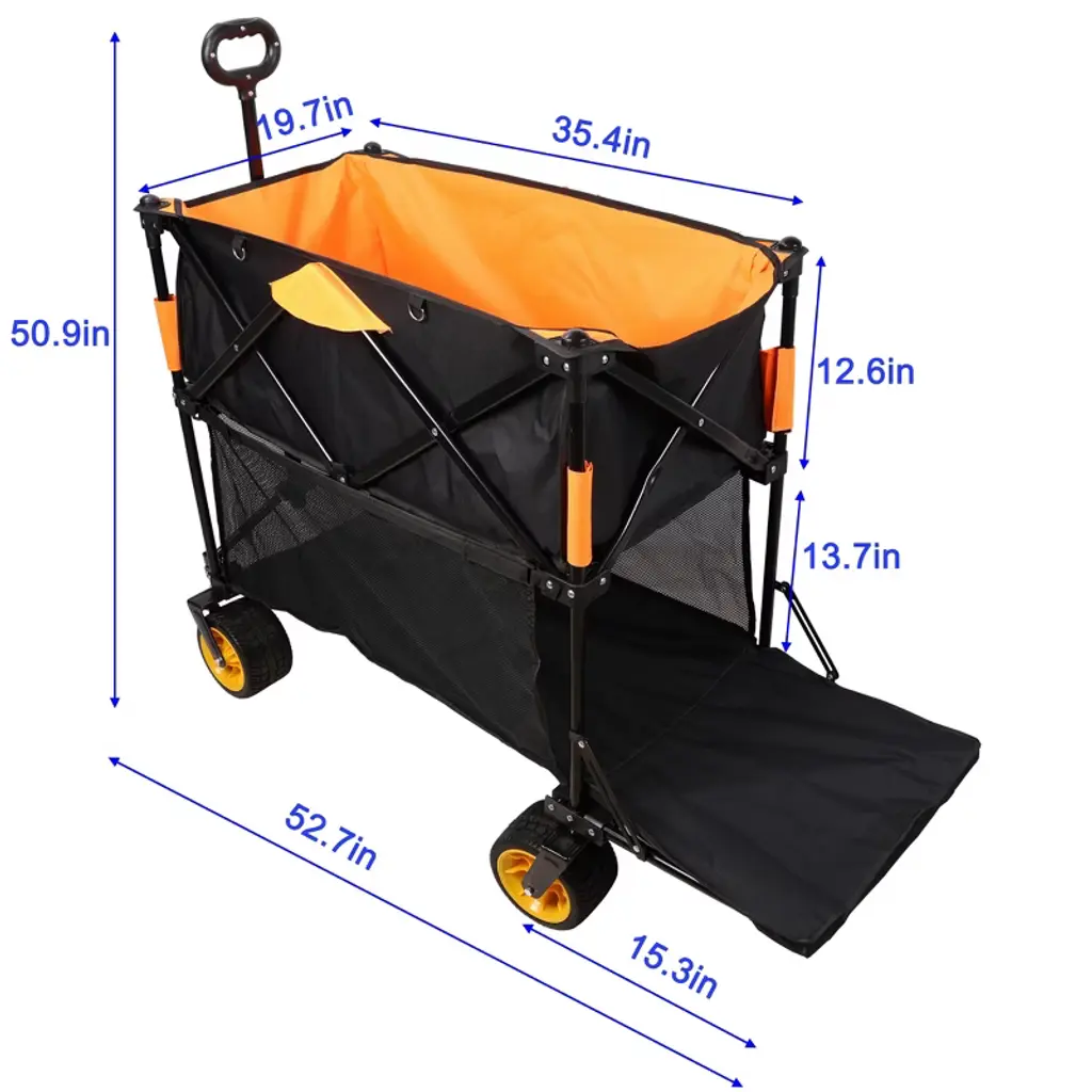 Racxily Big Large Capacity Folding Cart, Extra Long Extender Wagon Carts, Folding Wagon Garden Shopping Beach Cart, Black +Orange