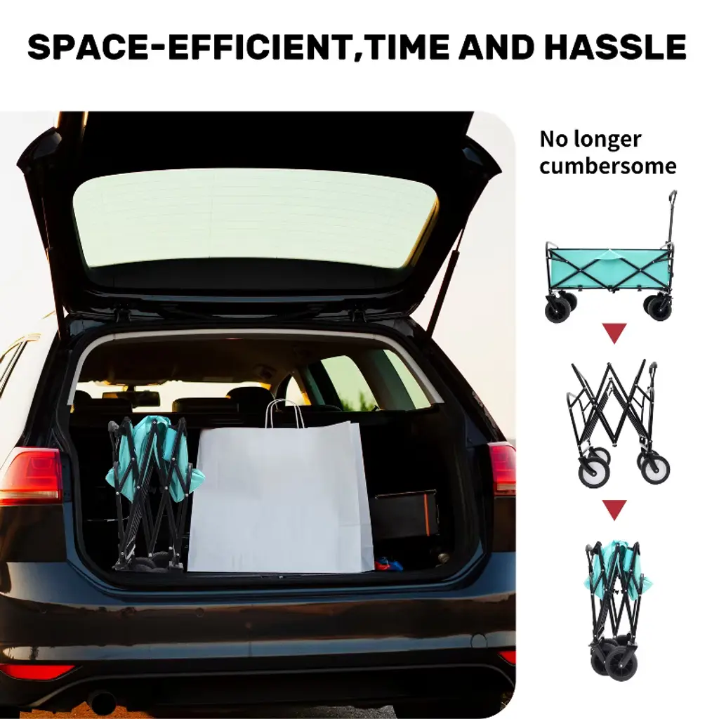 Racxily Collapsible Foldable Wagon Cart with Big All-Terrain Beach Wheels, Beach Wagon Utility Wagon Grocery Carts, Blue
