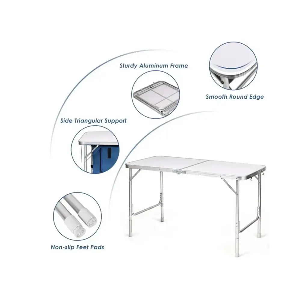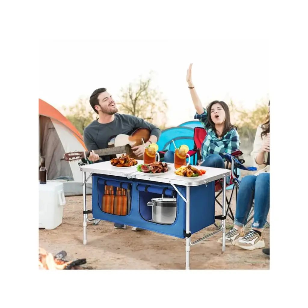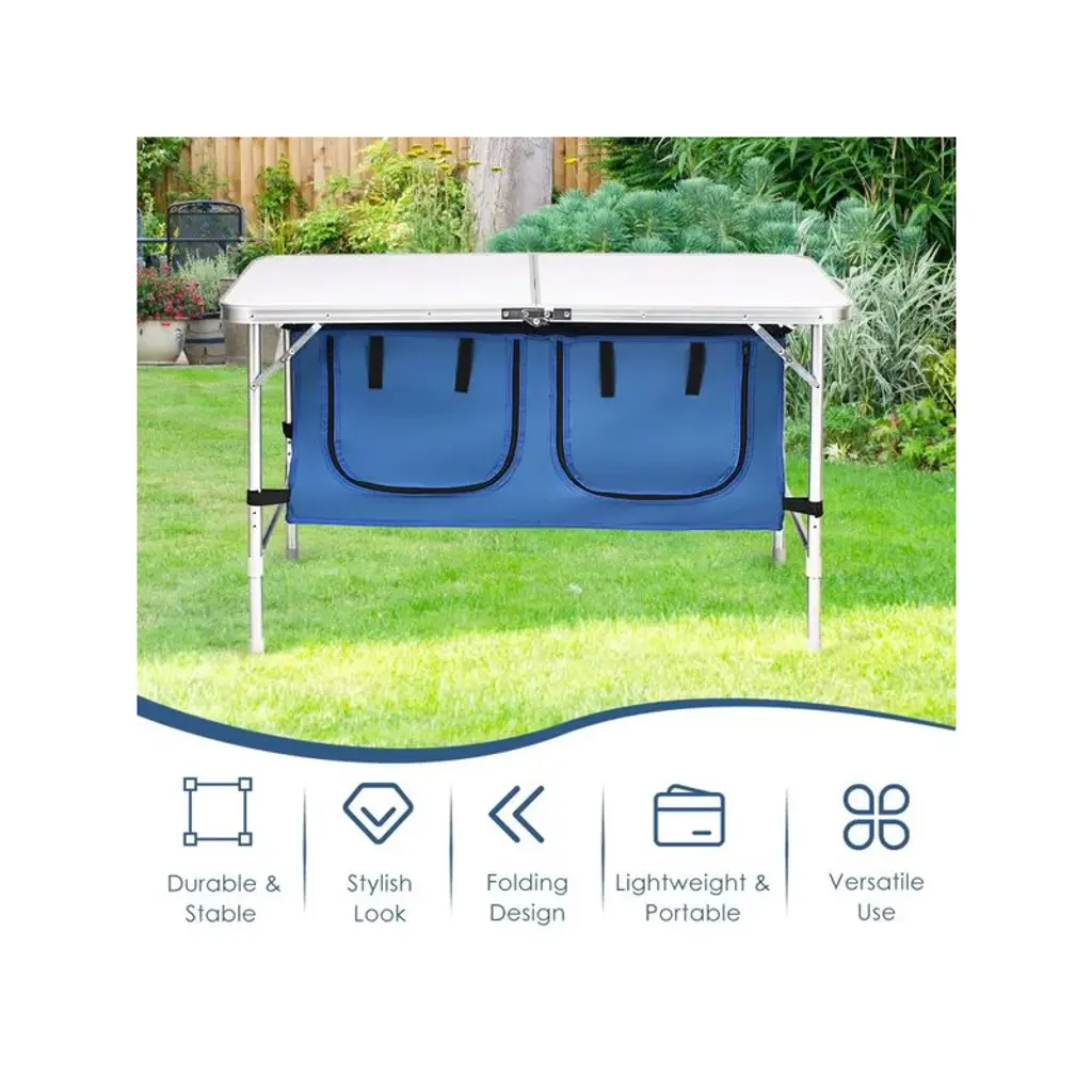 Overview The foldable design and compact size make the tables very easy to carry and transport. If you are looking for a table like that, don't hesitate to buy it. Foldable design simplifies the installation process 2 different heights are available Light weight and compact size make it easy to carry and store Triangular structure and reinforced beams enhance the load-bearing capacity Premium aluminum and wear-resistant Oxford cloth to extend the service life Large capacity lockers can be used to store large quantities of food, tableware, etc Premium aluminum and strong structure enable it to bear up to 45lbs Waterproof surface simplifies the cleaning process Multi-purpose table for picnic, barbecue, party, camping