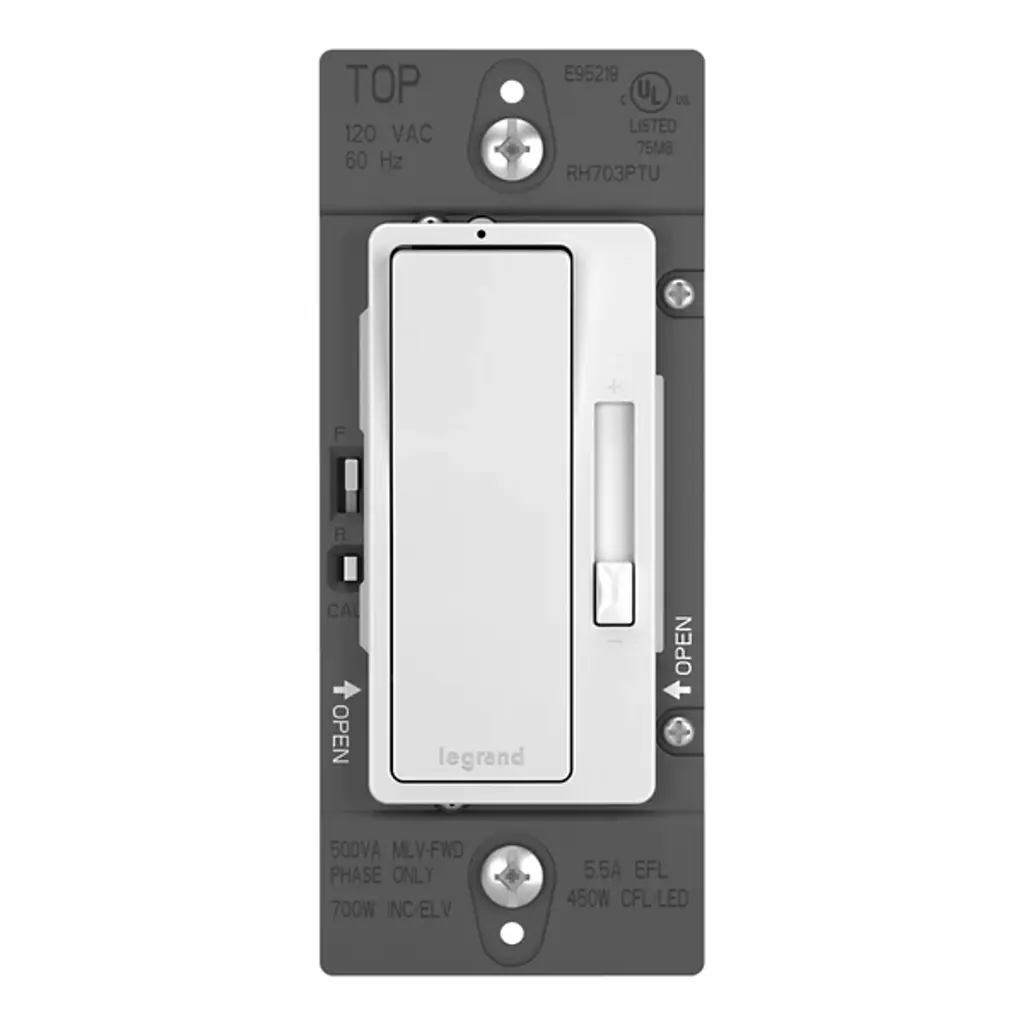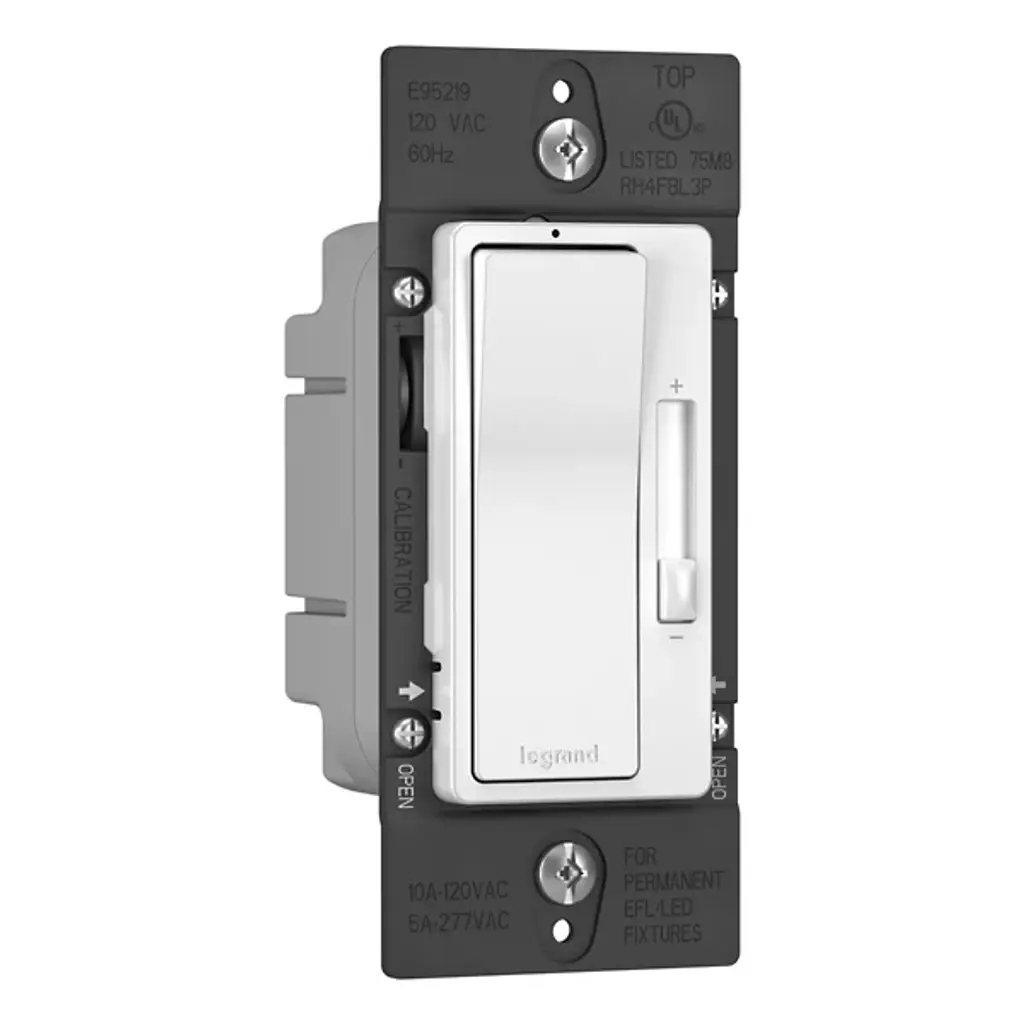 Enhance your lighting control and aesthetics with the Radiant 15A LED/Fluorescent Dimmer from Legrand Adorne. Crafted from durable, high-impact resistant thermoplastic, this dimmer switch is compatible with both LED and fluorescent lighting, suitable for single-pole and 3-way applications. Its low-profile paddle switch and ergonomic dimming slider provide precise control, while a locator light ensures easy access in low-light conditions. Pair it with screwless Wall Plates from the Radiant Collection for a polished look.