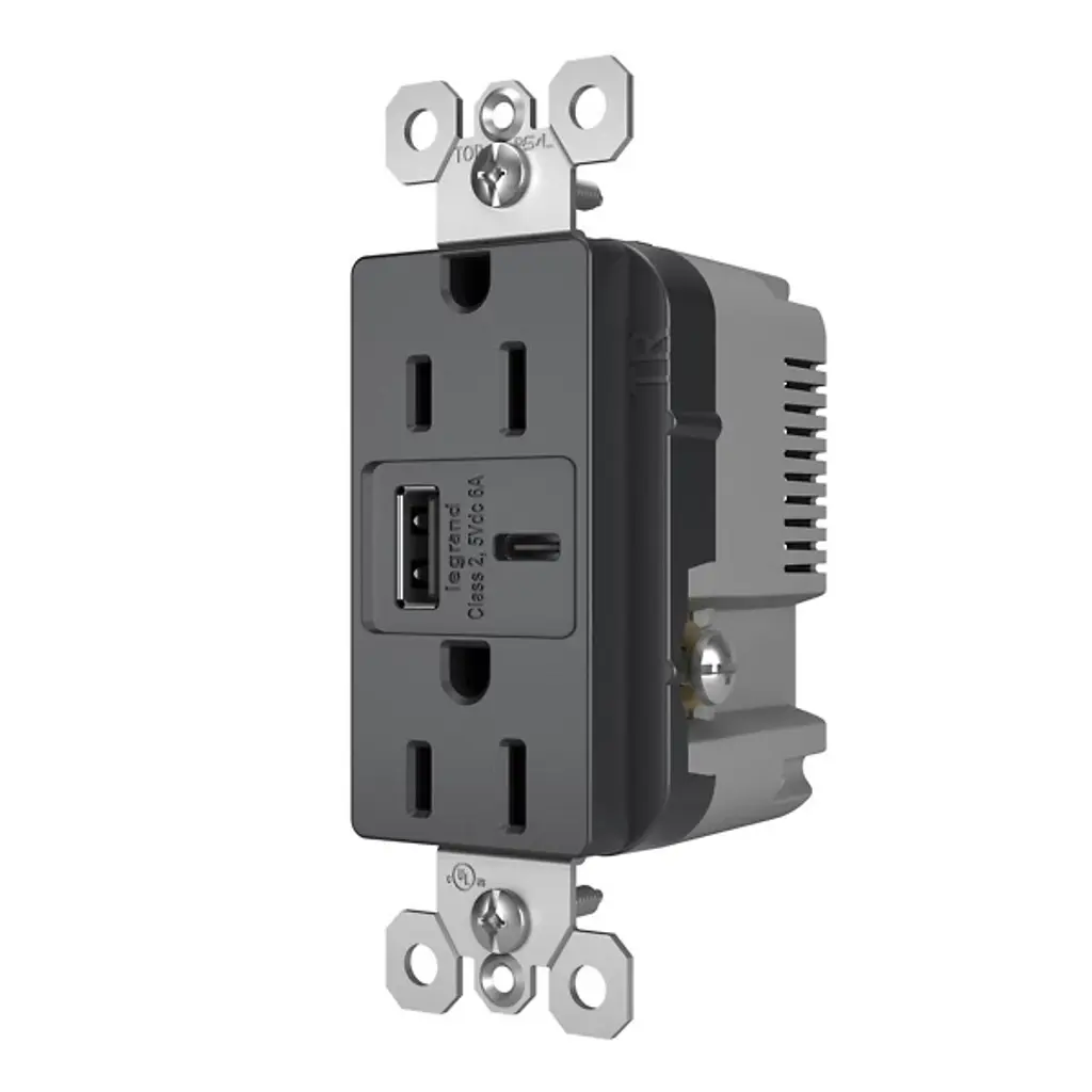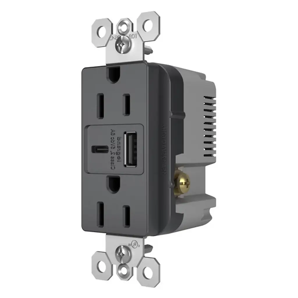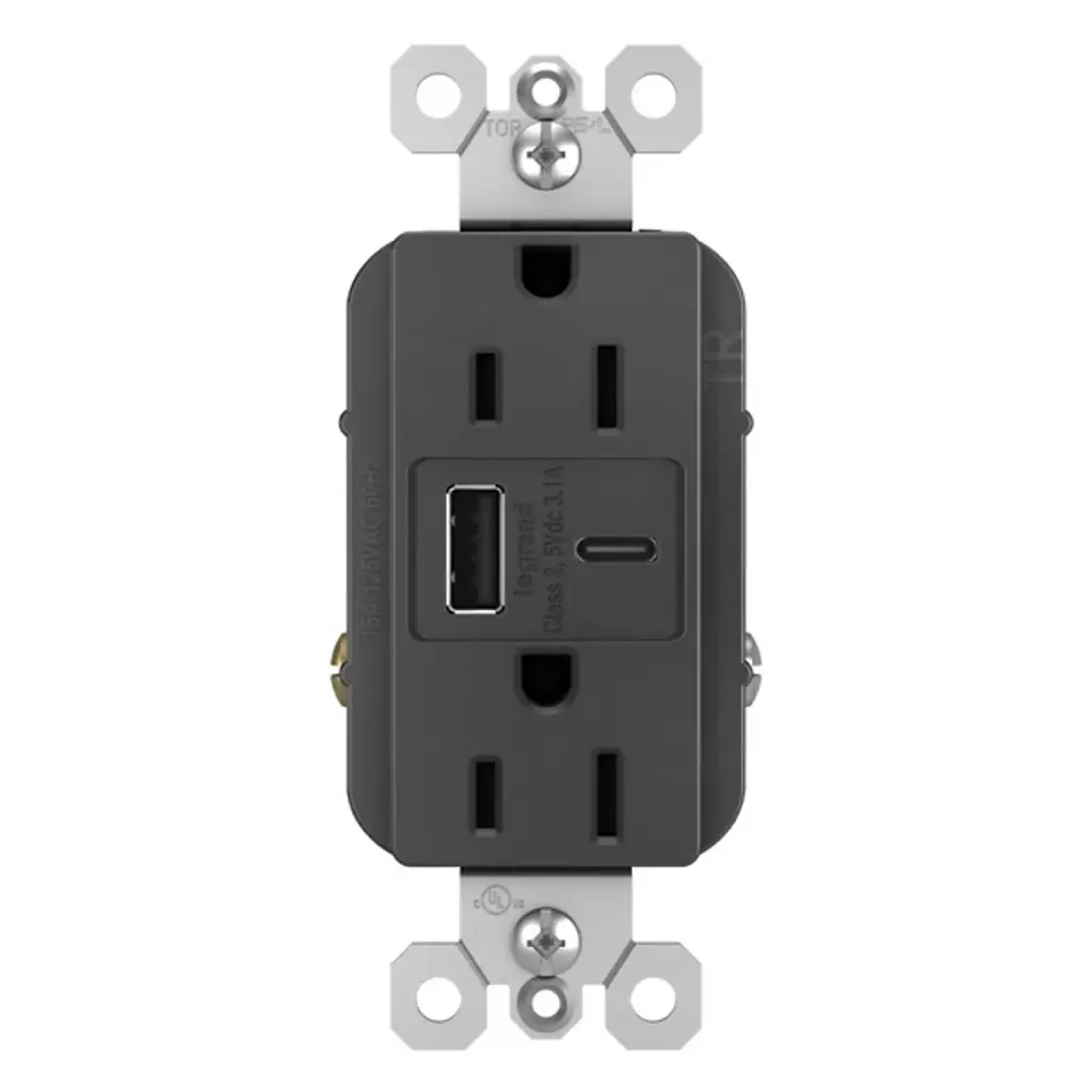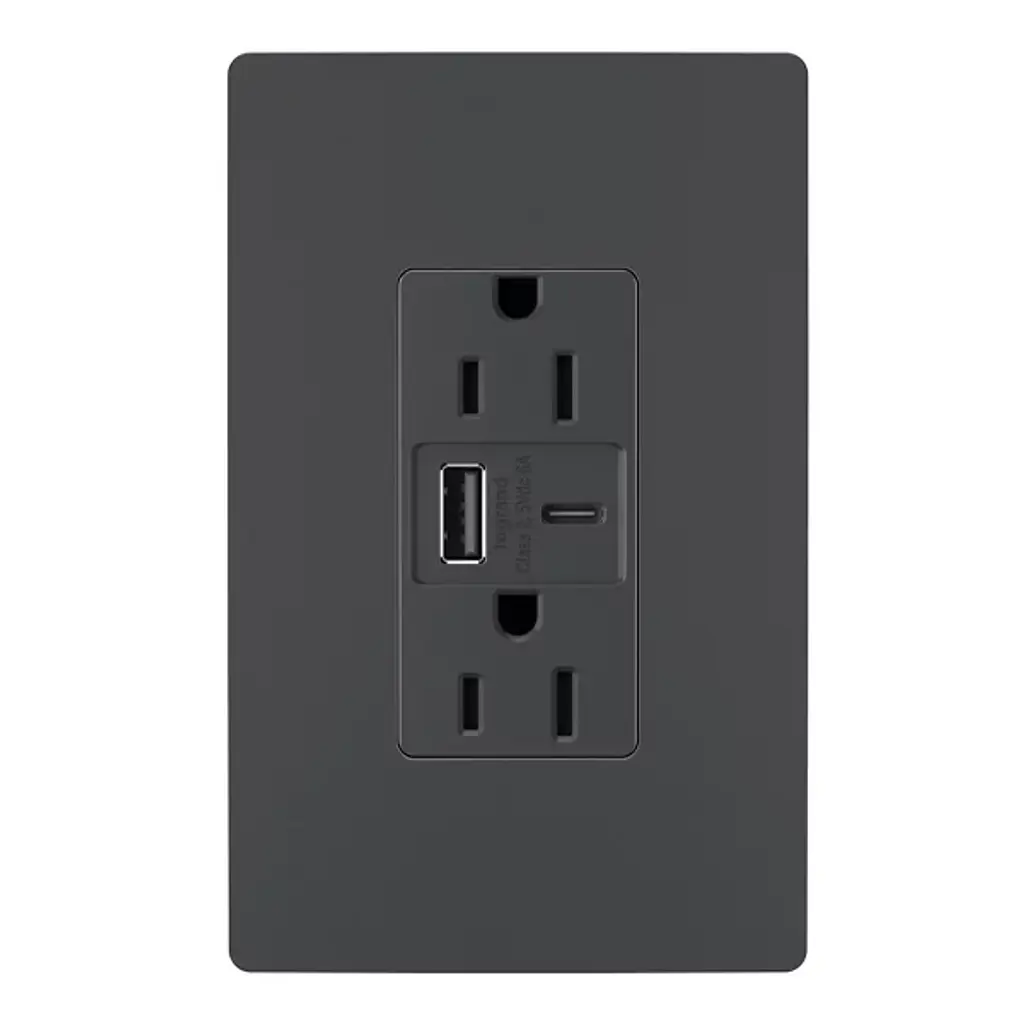 Simplify your charging experience with the Radiant 15A Tamper Resistant Outlet from Legrand Adorne. Designed for current and future electronic devices, this outlet provides convenient built-in charging capabilities for smartphones, tablets, and more. Equipped with USB Type-A and USB Type-C connections, it eliminates the need for bulky adapters and allows you to charge multiple devices simultaneously. Installing in as little as ten minutes, this tamper-resistant outlet seamlessly integrates into your space, combining modern functionality with the elegant design of the Radiant Collection.