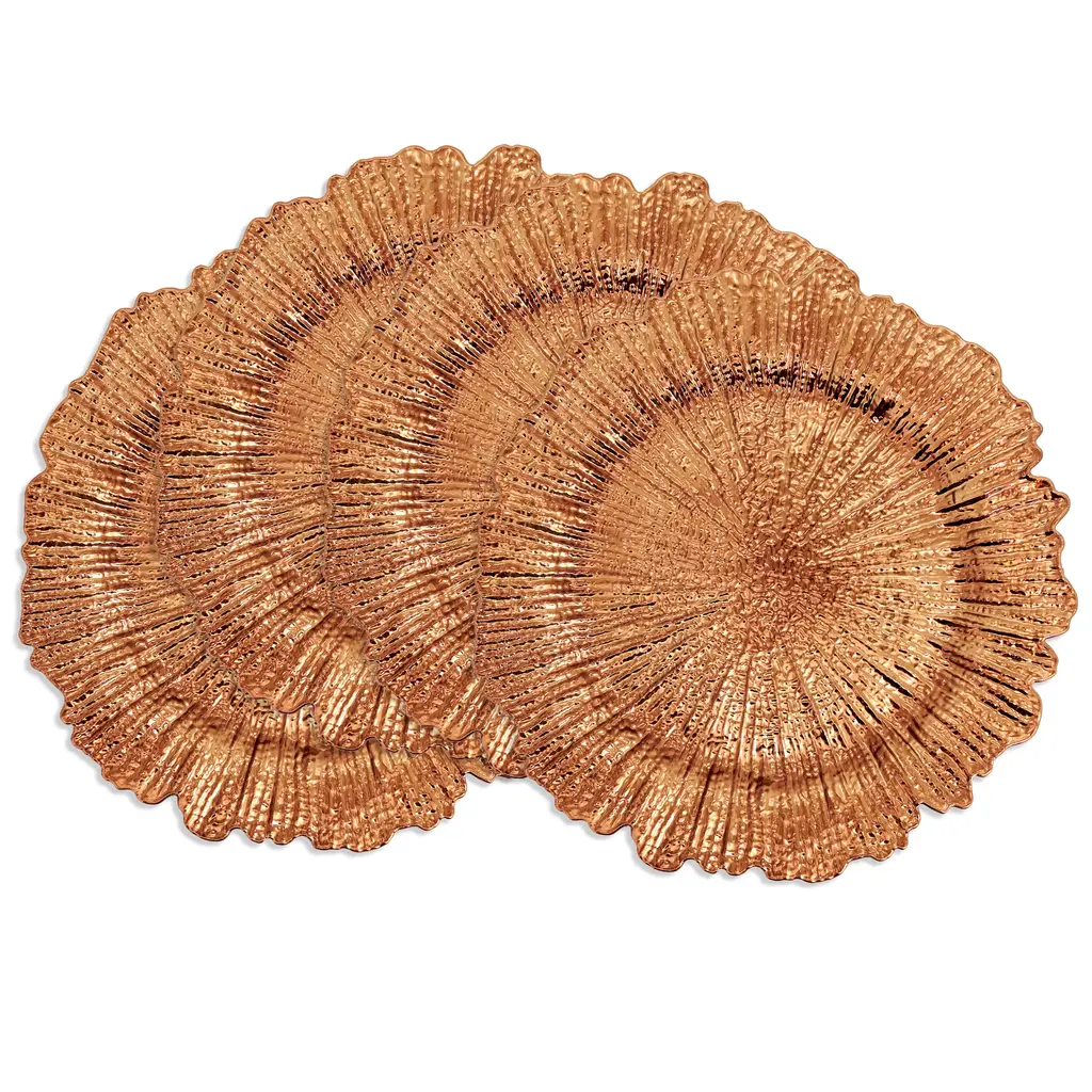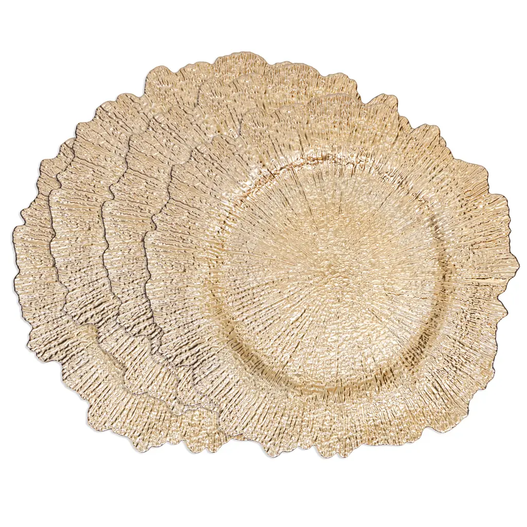 Enhance your table presentation with this set of Radiant Elegance Starburst Chargers. Crafted to dazzle it adds a burst of glamour to any dining occasion.