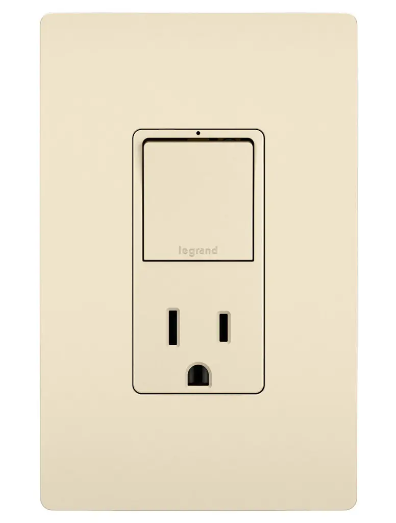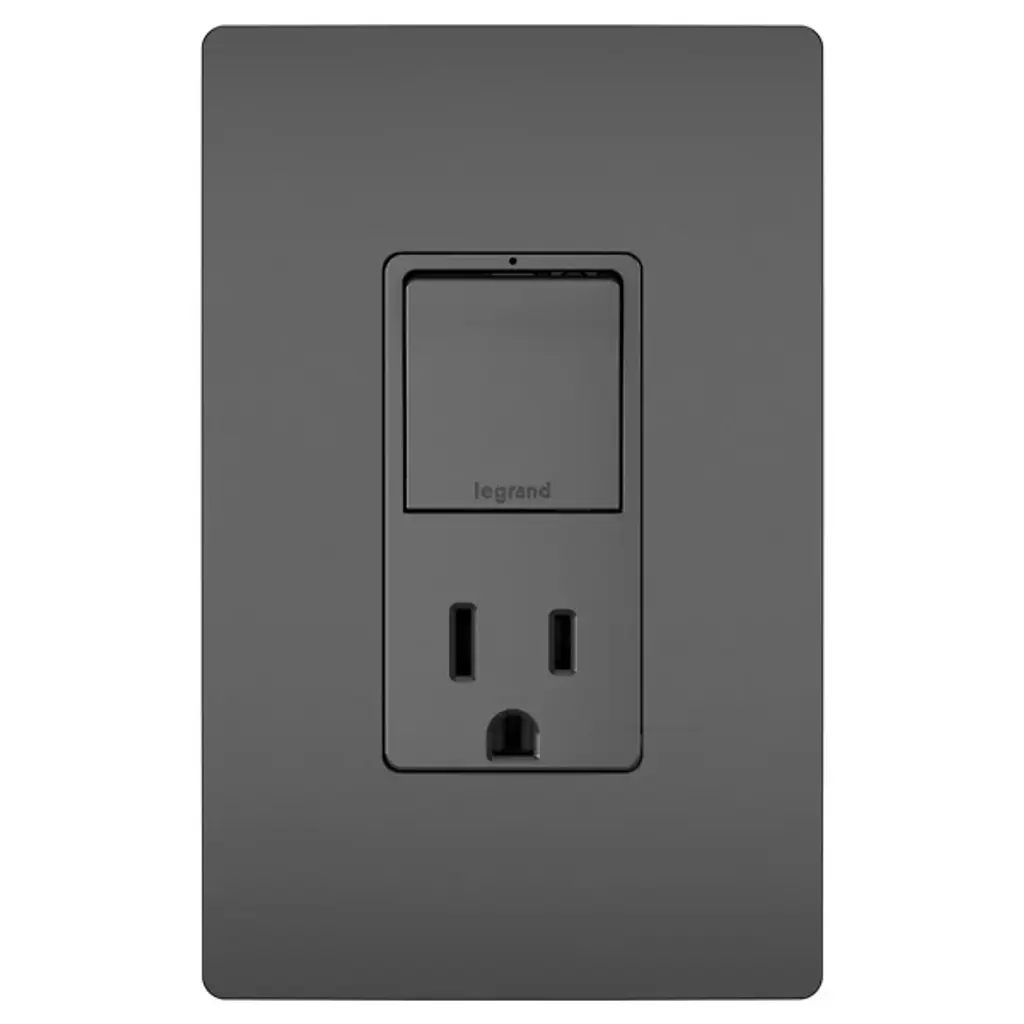 Combine style and solid pragmatism with the Radiant Single Pole/3-Way Switch with 15A Tamper Resistant Outlet from Legrand Adorne. Operable solo or with a coordinating switch, this durable thermoplastic panel offers flexible lighting control. It safely powers devices through a patented protective shutter system. Part of the sophisticated Radiant Collection, an included decorator wall plate flawlessly fits its sleek toggle lines. For design-forward power and lighting control, The outlet combines form with flexible function.