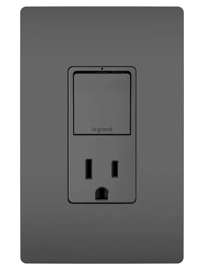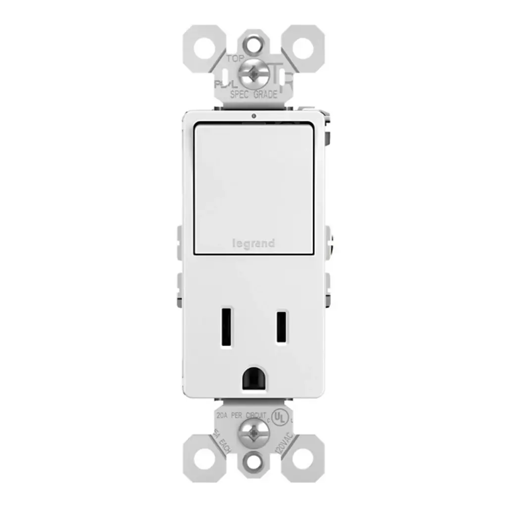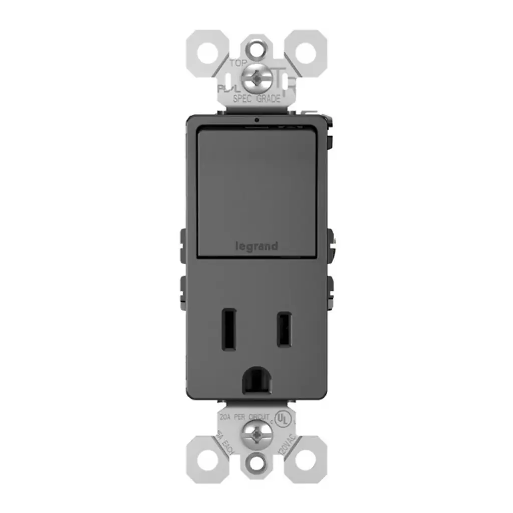 Combine style and solid pragmatism with the Radiant Single Pole/3-Way Switch with 15A Tamper Resistant Outlet from Legrand Adorne. Operable solo or with a coordinating switch, this durable thermoplastic panel offers flexible lighting control. It safely powers devices through a patented protective shutter system. Part of the sophisticated Radiant Collection, an included decorator wall plate flawlessly fits its sleek toggle lines. For design-forward power and lighting control, The outlet combines form with flexible function.