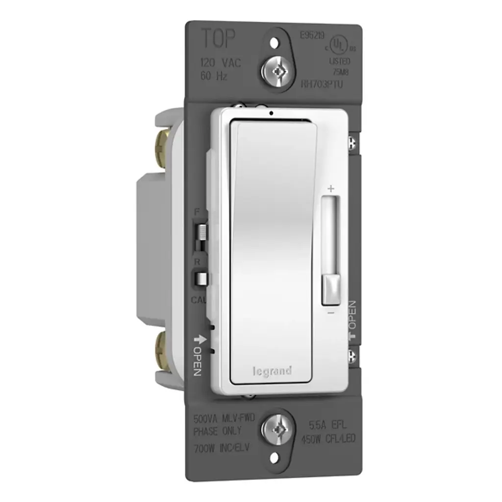 Add impact and clever customization to home or commercial spaces with the Radiant Tru-Universal Dimmer from Legrand Adorne. Compatible with most 120v dimmable lamps or larger fixtures, this rectangular polycarbonate construction is designed to blend in and let the light stand out. An LED indicator makes finding it in the dark a breeze, while a subtle switch next to a single dial allows custom lighting intensity without any frustrating flicker.