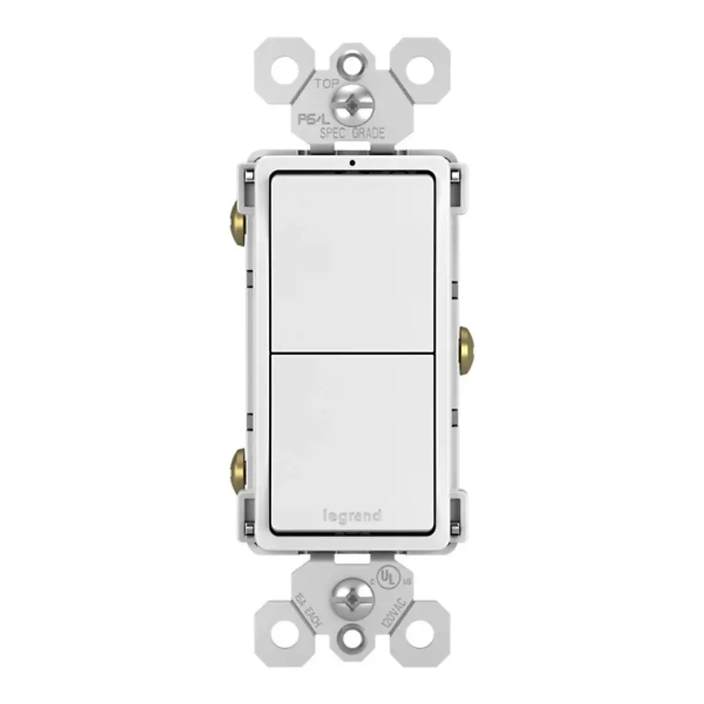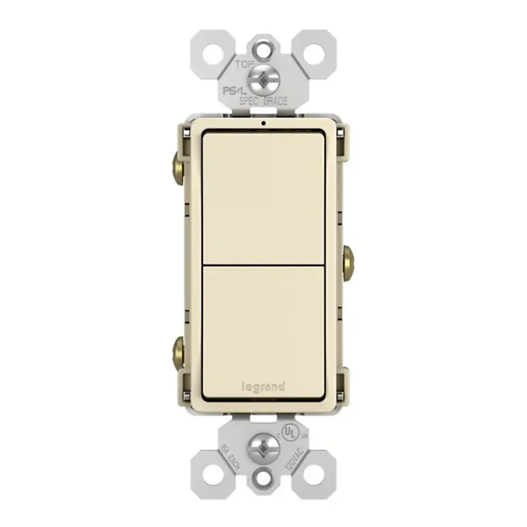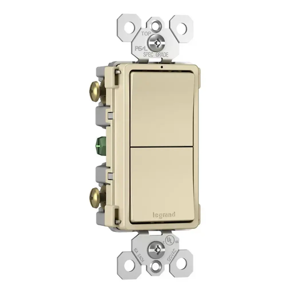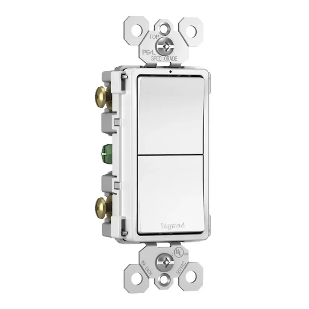 Effortlessly manage two independent lights or devices from one convenient location with the Radiant Two Single Pole Switches by Legrand Adorne. This combination switch offers versatile control, allowing you to create the perfect lighting ambiance. Its sleek design mirrors the collection's paddle switches, providing both flexibility and elegance. Designed exclusively for use with screwless Wall Plates from the Radiant Collection, this switch ensures a seamless, sophisticated appearance in strong plastic.