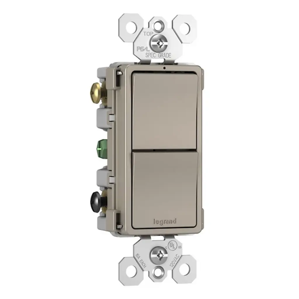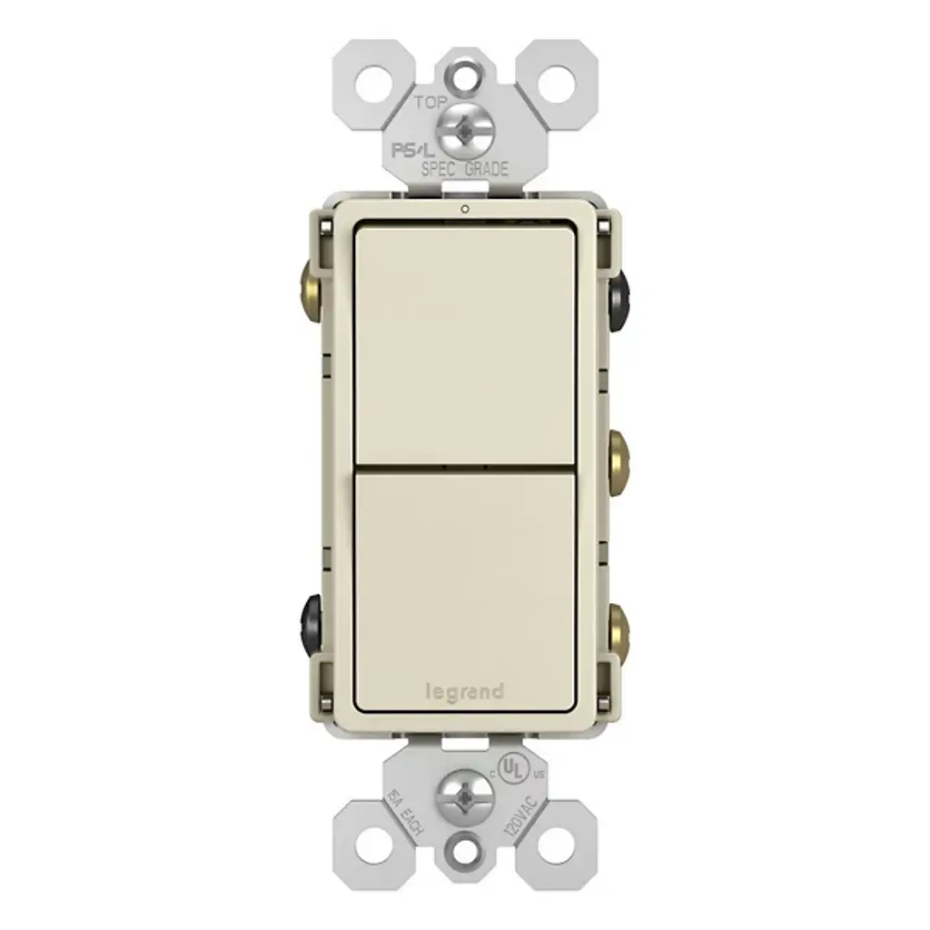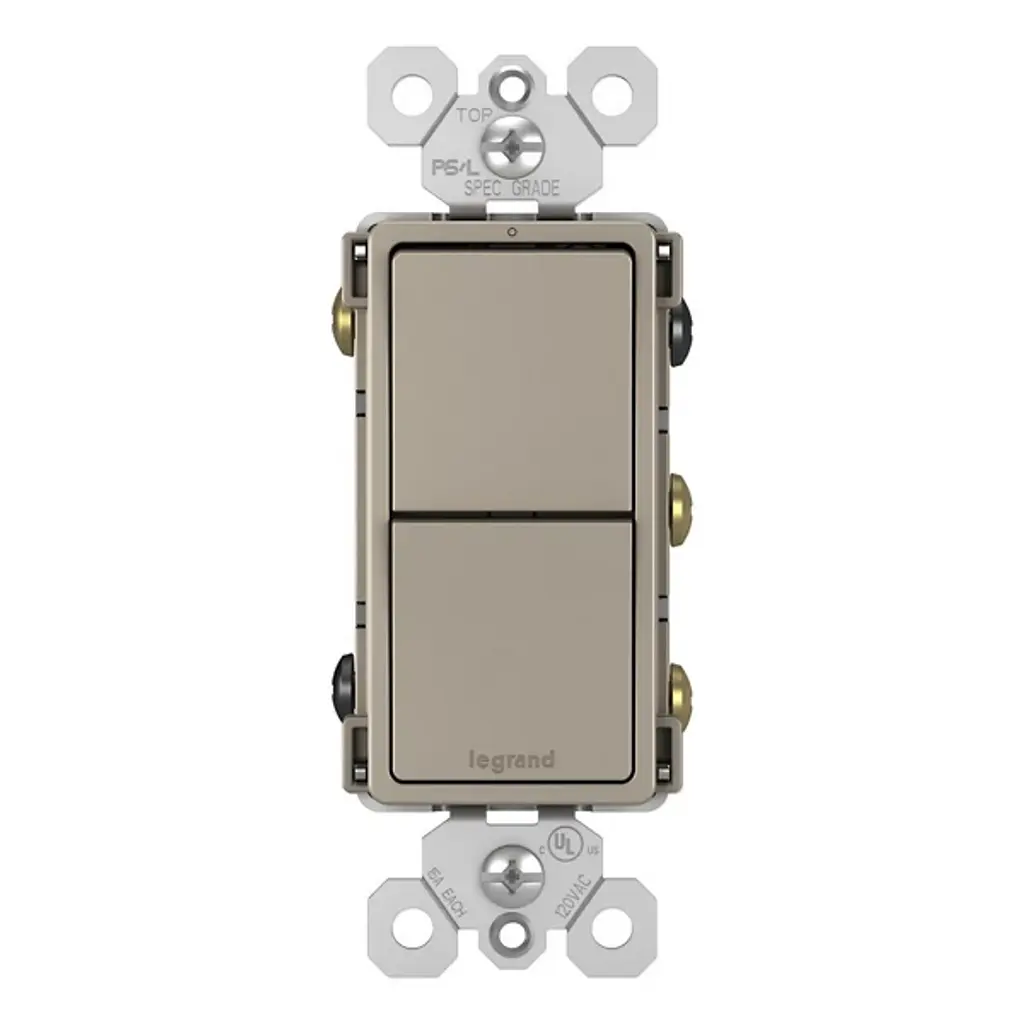 Attain more lighting control with the Radiant Two Single Pole/3-Way Switches by Legrand Adorne. This versatile combination switch allows you to operate two independent lights or devices effortlessly from a single location. With the flexibility to adapt to both single-pole and 3-way applications, it offers a seamless blend of usability and understated style. Mirroring the sleek aesthetics of the collection's paddle switches, it delivers space-saving control with the sophisticated design of radiant.