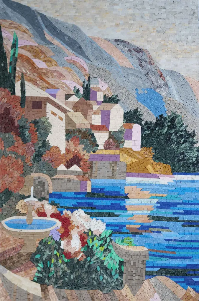 Radiant Village - Petal Mosaic Stone Art - 60cm X 42cm (24" X 17") / With Frame