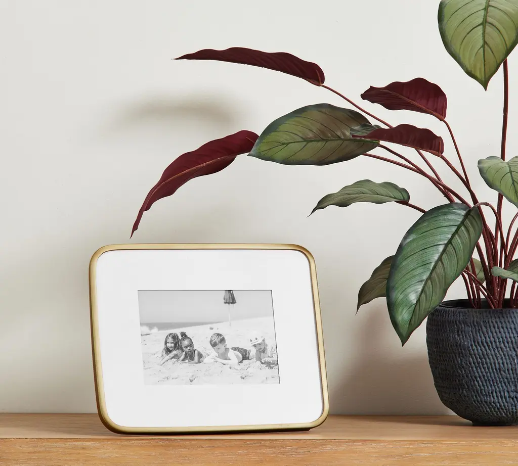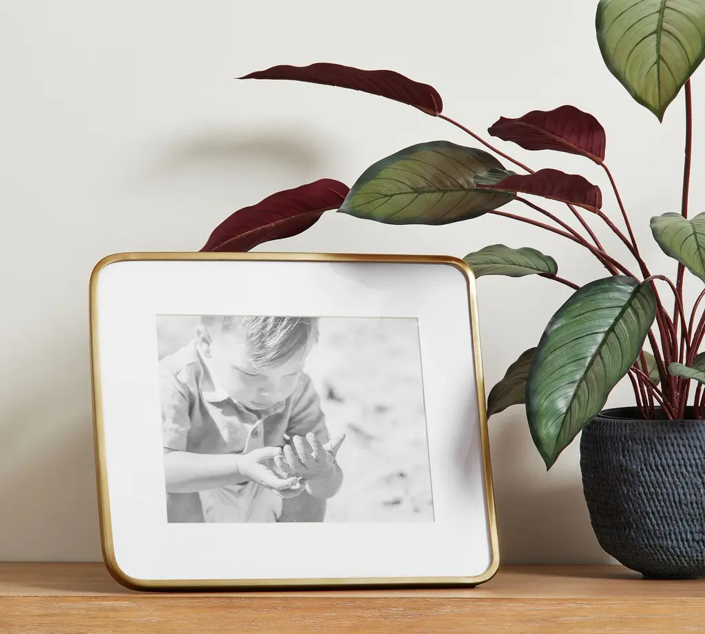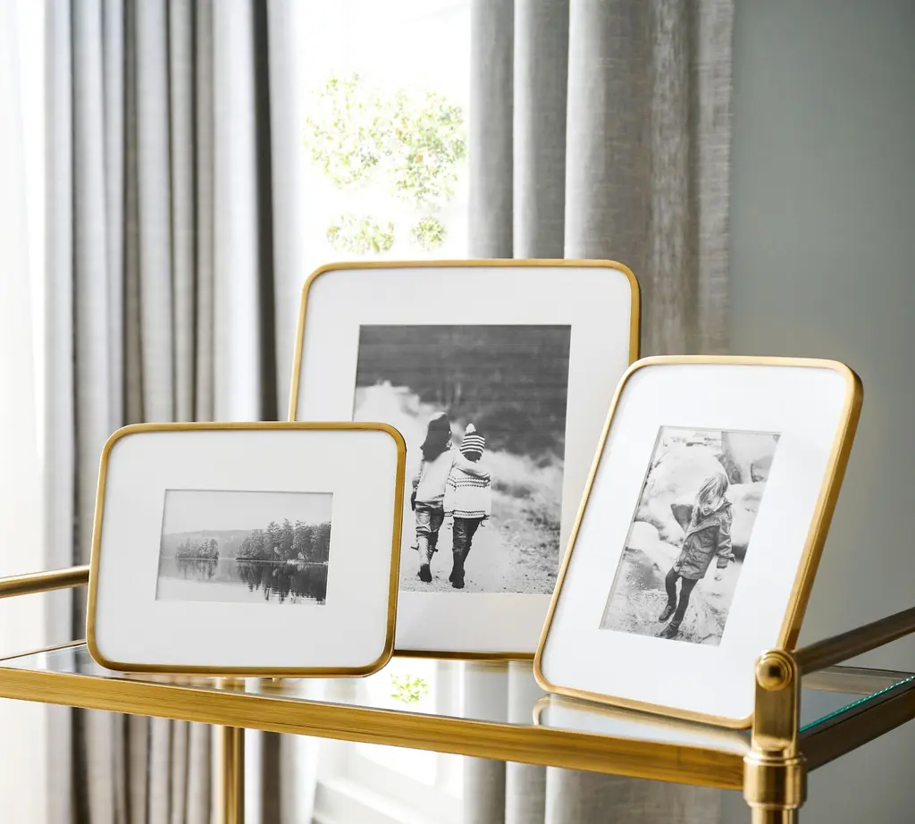 Brushed metal and round radius corners add a subtle drama to your favorite photos. The slender frame and thick white mat elevate your most treasured moments, giving the presentation they deserve.