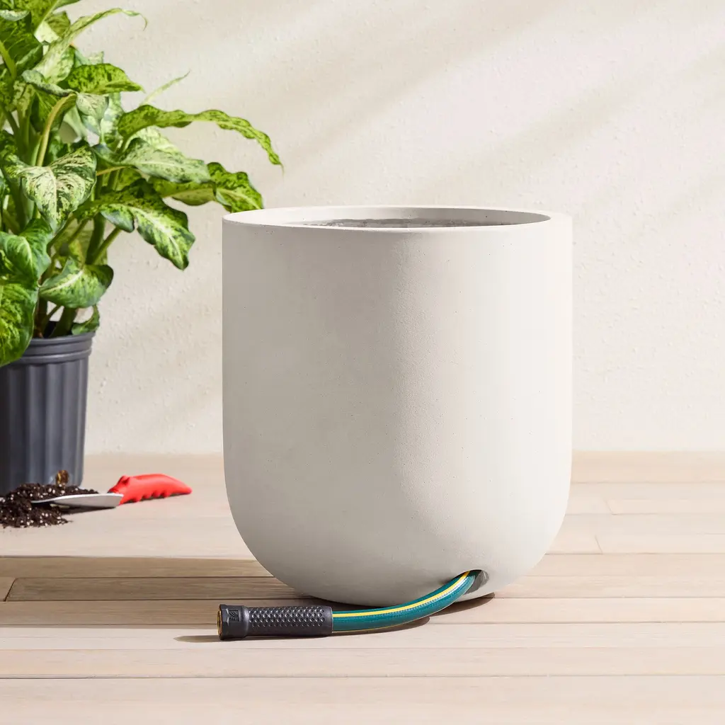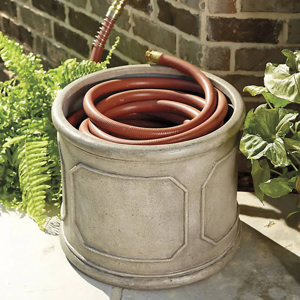 Made from an easy-to-move lightweight composite. Keeps your hose neatly stored. Drainage holes get rid of excess water.