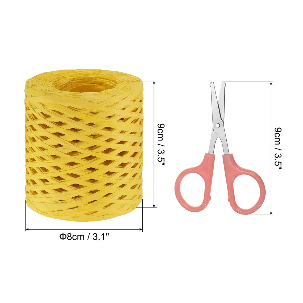 The raffia paper craft ribbon is perfect for adding a rustic and charming touch to your gifts, flower bouquets, party decorations, and more. It allows you to create beautiful bows, and wraps that will delight. This kit includes a generous roll of natural raffia string and an assortment of scissors, providing you with all the supplies you need.SpecificationColor: Pale GreenMaterial: PaperOverall Length: 200M/ 218 YardsDimension: 8cm x 9cm/ 3.15 inch x 3.54 inch (D*H)Scissor Overall Length: 9cm/ 3.54 inchPacking List: 1 Roll x Raffia Paper Craft Ribbon, 1 x ScissorAdvantageMade from raffia, this string is durable and easy to work with. It provides a secure and reliable tying solution for your crafts, ensuring that your creations hold together perfectly.InstructionUsing the raffia string is simple and hassle-free. Just cut the desired length using the assortment of scissors provided, and use it to tie, wrap, or decorate as needed. Let your imagination run and explore the endless possibilities of this versatile craft supply.NOTE: Keep the raffia string away from open flame and store it in a cool, dry place when not in use. Adult supervision is recommended when using scissors.
