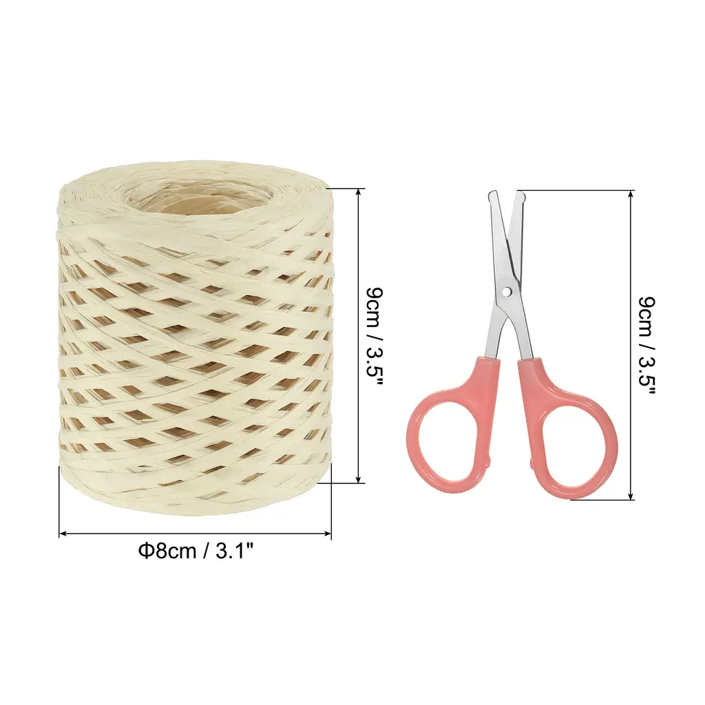 The raffia paper craft ribbon is perfect for adding a rustic and charming touch to your gifts, flower bouquets, party decorations, and more. It allows you to create beautiful bows, and wraps that will delight. This kit includes a generous roll of natural raffia string and an assortment of scissors, providing you with all the supplies you need.SpecificationColor: Pale GreenMaterial: PaperOverall Length: 200M/ 218 YardsDimension: 8cm x 9cm/ 3.15 inch x 3.54 inch (D*H)Scissor Overall Length: 9cm/ 3.54 inchPacking List: 1 Roll x Raffia Paper Craft Ribbon, 1 x ScissorAdvantageMade from raffia, this string is durable and easy to work with. It provides a secure and reliable tying solution for your crafts, ensuring that your creations hold together perfectly.InstructionUsing the raffia string is simple and hassle-free. Just cut the desired length using the assortment of scissors provided, and use it to tie, wrap, or decorate as needed. Let your imagination run and explore the endless possibilities of this versatile craft supply.NOTE: Keep the raffia string away from open flame and store it in a cool, dry place when not in use. Adult supervision is recommended when using scissors.
