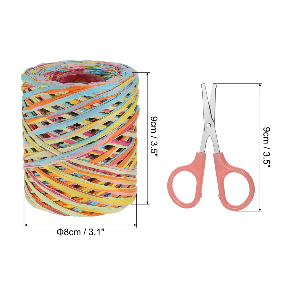 The raffia paper craft ribbon is perfect for adding a rustic and charming touch to your gifts, flower bouquets, party decorations, and more. It allows you to create beautiful bows, and wraps that will delight. This kit includes a generous roll of natural raffia string and an assortment of scissors, providing you with all the supplies you need.SpecificationColor: Rose Red/Navy BlueMaterial: PaperOverall Length: 200M/ 218 YardsDimension: 8cm x 9cm/ 3.15 inch x 3.54 inch (D*H)Scissor Overall Length: 9cm/ 3.54 inchPacking List: 1 Roll x Raffia Paper Craft Ribbon, 1 x ScissorAdvantageMade from raffia, this string is durable and easy to work with. It provides a secure and reliable tying solution for your crafts, ensuring that your creations hold together perfectly.InstructionUsing the raffia string is simple and hassle-free. Just cut the desired length using the assortment of scissors provided, and use it to tie, wrap, or decorate as needed. Let your imagination run and explore the endless possibilities of this versatile craft supply.NOTE: Keep the raffia string away from open flame and store it in a cool, dry place when not in use. Adult supervision is recommended when using scissors.