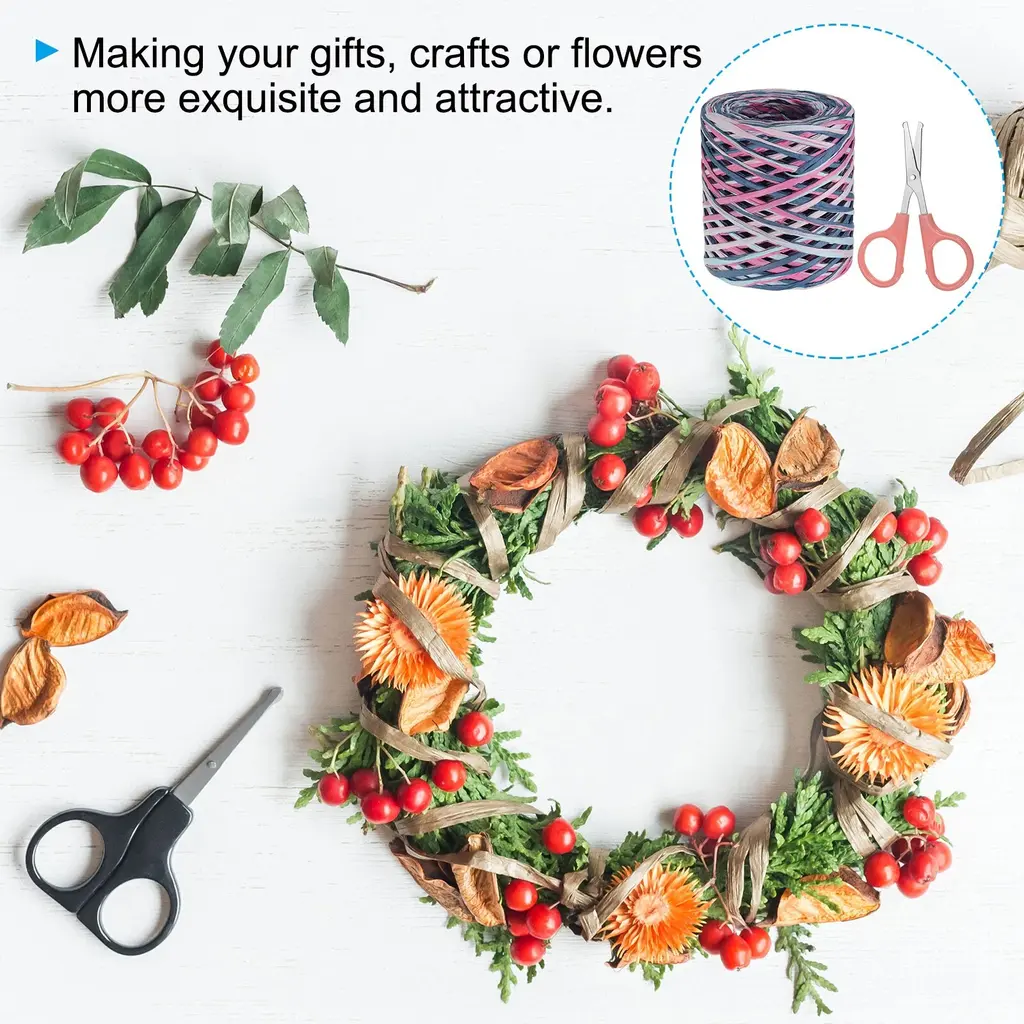 The raffia paper craft ribbon is perfect for adding a rustic and charming touch to your gifts, flower bouquets, party decorations, and more. It allows you to create beautiful bows, and wraps that will delight. This kit includes a generous roll of natural raffia string and an assortment of scissors, providing you with all the supplies you need.SpecificationColor: Rose Red/Navy BlueMaterial: PaperOverall Length: 200M/ 218 YardsDimension: 8cm x 9cm/ 3.15 inch x 3.54 inch (D*H)Scissor Overall Length: 9cm/ 3.54 inchPacking List: 1 Roll x Raffia Paper Craft Ribbon, 1 x ScissorAdvantageMade from raffia, this string is durable and easy to work with. It provides a secure and reliable tying solution for your crafts, ensuring that your creations hold together perfectly.InstructionUsing the raffia string is simple and hassle-free. Just cut the desired length using the assortment of scissors provided, and use it to tie, wrap, or decorate as needed. Let your imagination run and explore the endless possibilities of this versatile craft supply.NOTE: Keep the raffia string away from open flame and store it in a cool, dry place when not in use. Adult supervision is recommended when using scissors.