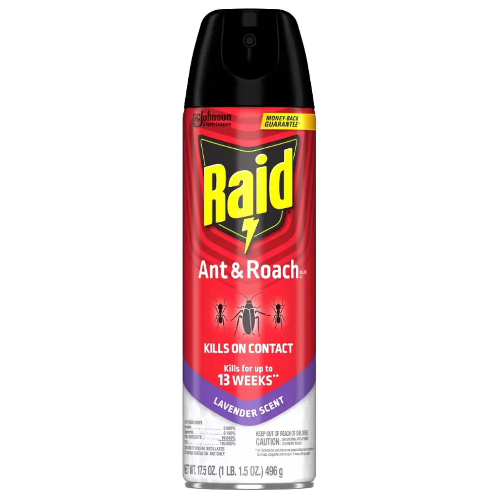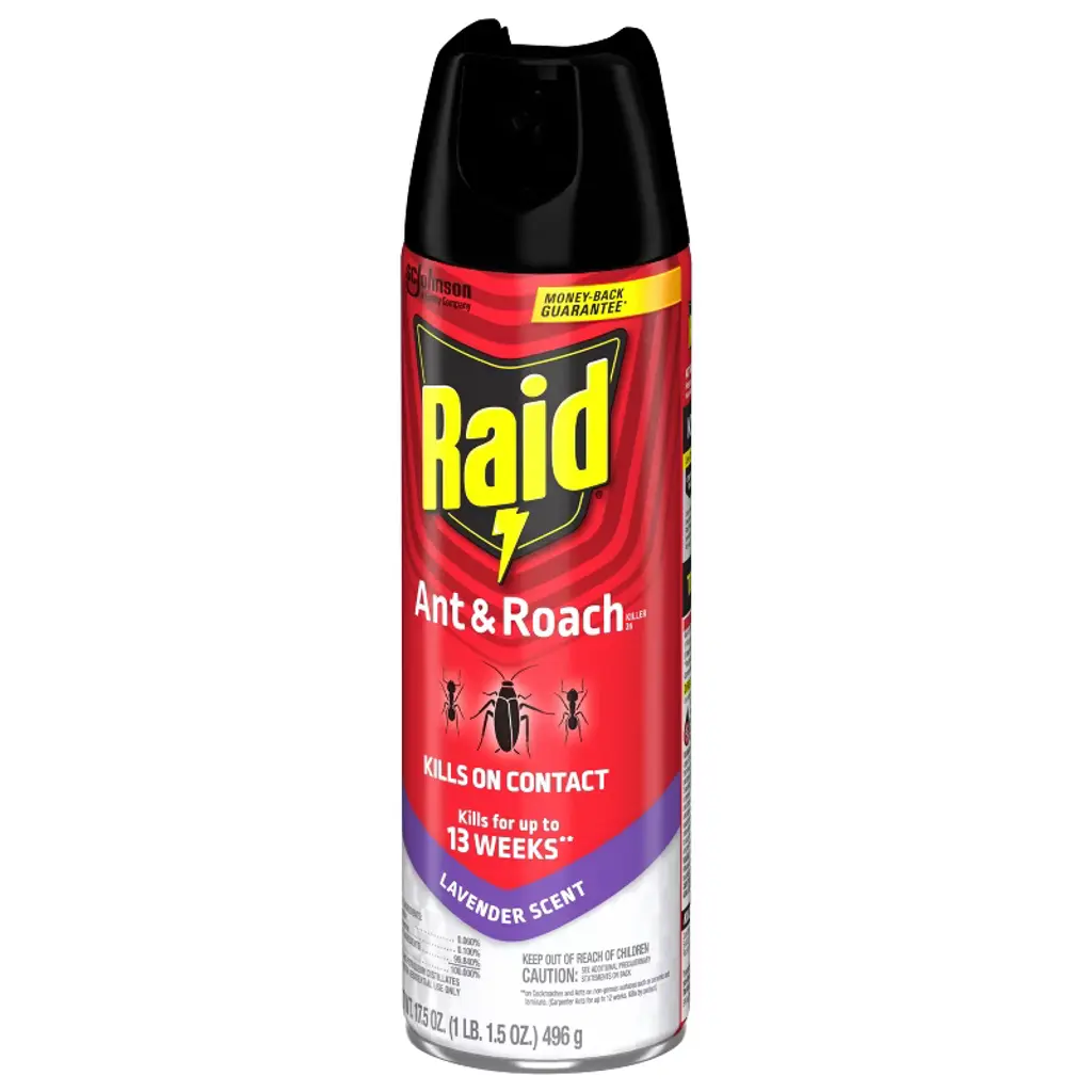 Raid® Ant & Roach Killer formula kills on contact and keeps killing with residual action for up to 13 weeks* * Protect your family with this easy to use ant & roach spray. It can be applied to surfaces where ants, cockroaches and other bugs are found. Kills a wide variety of insects including cockroaches, ants, silverfish, crickets, earwigs, household spiders, multicolored Asian lady beetles and stinkbugs.