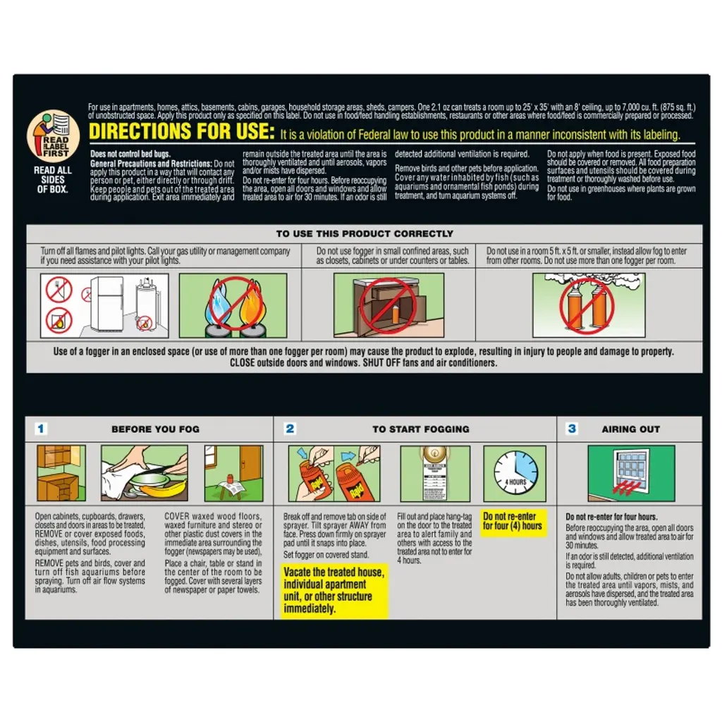 The worst bug invasions deserve MAX protection. Raid® MAX Concentrated Deep Reach Fogger kills insects where they live and breed and keeps killing for up to 2 months. The penetrating fog reaches deep into hard-to-reach areas as well as cracks and crevices to kill hidden bugs. Raid® MAX fogger works against a wide range of insects. It’s an ant killer, roach killer and mosquito killer that’s also effective on earwigs, fleas, crickets, ticks, black carpet beetles, saw-toothed grain beetles, small flying moths, water bugs, pill bugs, rice weevils, palmetto bugs, and more.* Raid® MAX Concentrated Deep Reach Fogger handles large infestations. Raid® MAX Concentrated Deep Reach Fogger is suitable for large spaces–1 can treats up to 7,000 cu ft (a room up to 25’ x 35’ with an 8’ ceiling). Perfect to help treat areas such as attics, basements, cabins, garages, household storage areas, sheds and campers. It has a delayed fogging action, giving you time to leave the room before it starts working. And afterwards, there’s no messy residue left behind. *when used as directed