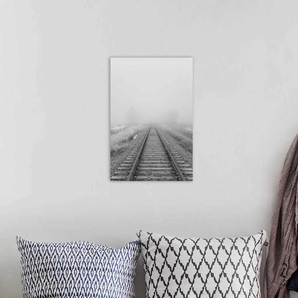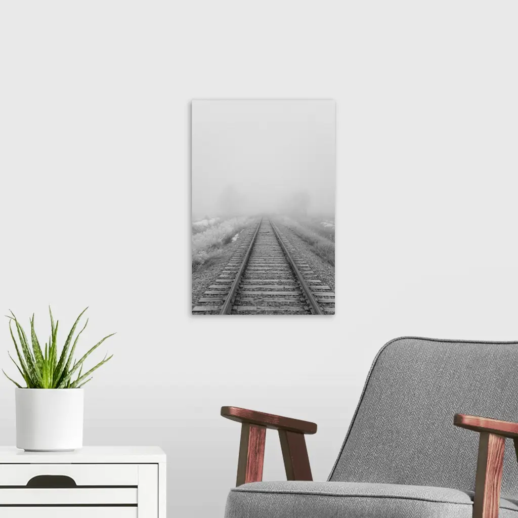 Railroad tracks fade into the morning fog wall art for home and office decor. Discover canvas art prints, photos, mural, big canvas art and framed wall art in GreatBigCanvas.com's varied collections.