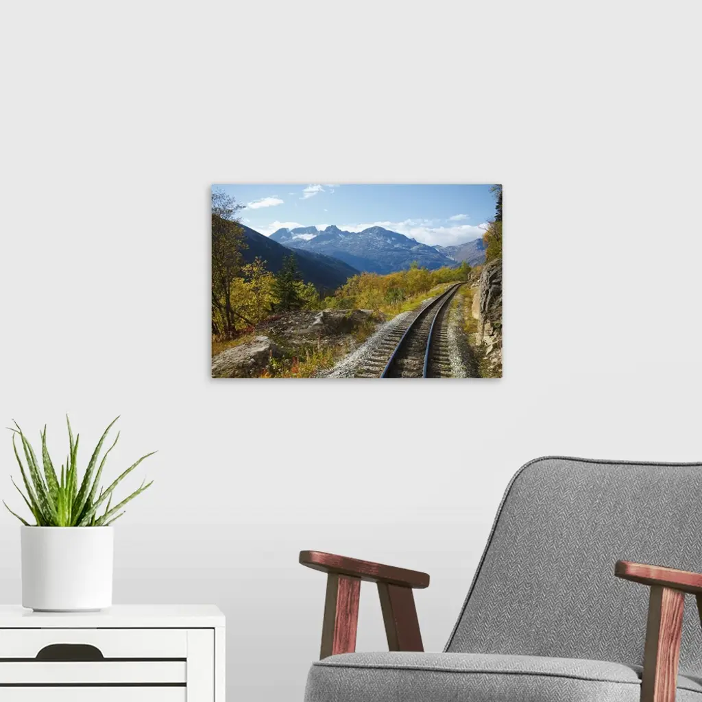 Railroad tracks rounding a bend, Skagway, Alaska, USA wall art for home and office decor. Discover canvas art prints, photos, mural, big canvas art and framed wall art in GreatBigCanvas.com's varied collections.