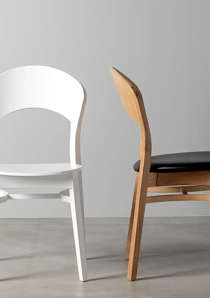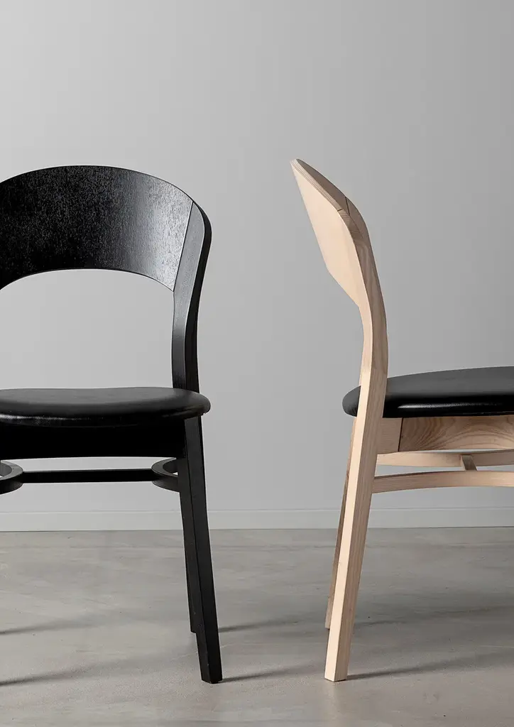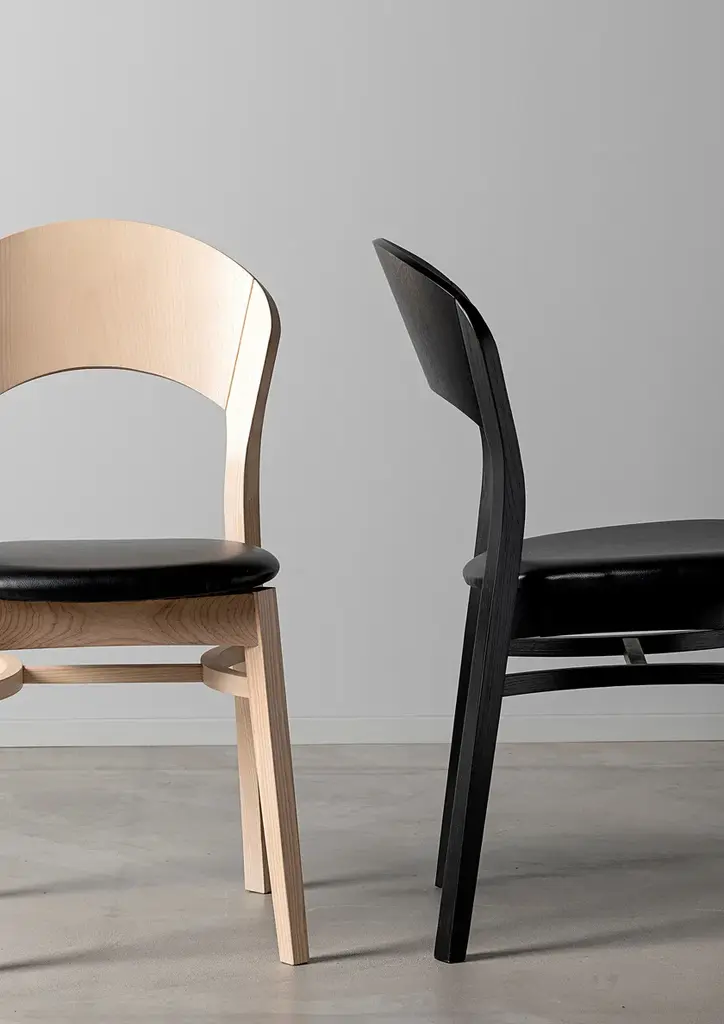 Rainbow is a chair with a leather or fabric integrated cushion. The structure is available in different types of wood and colors.