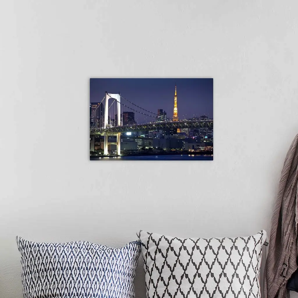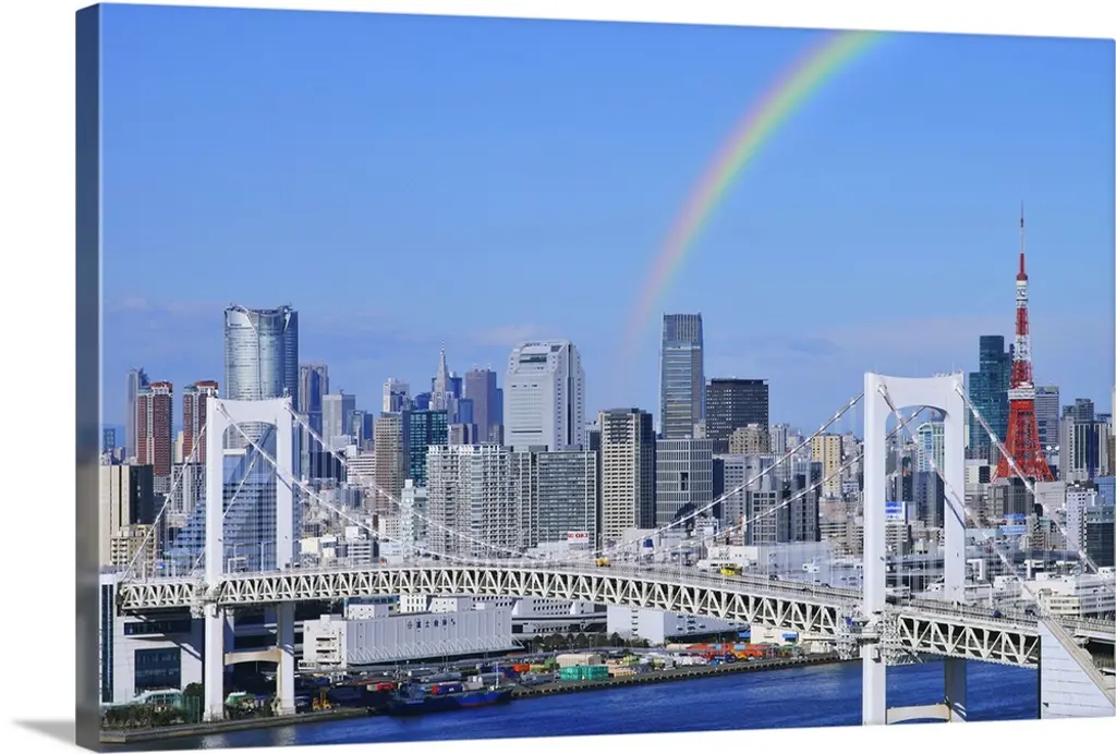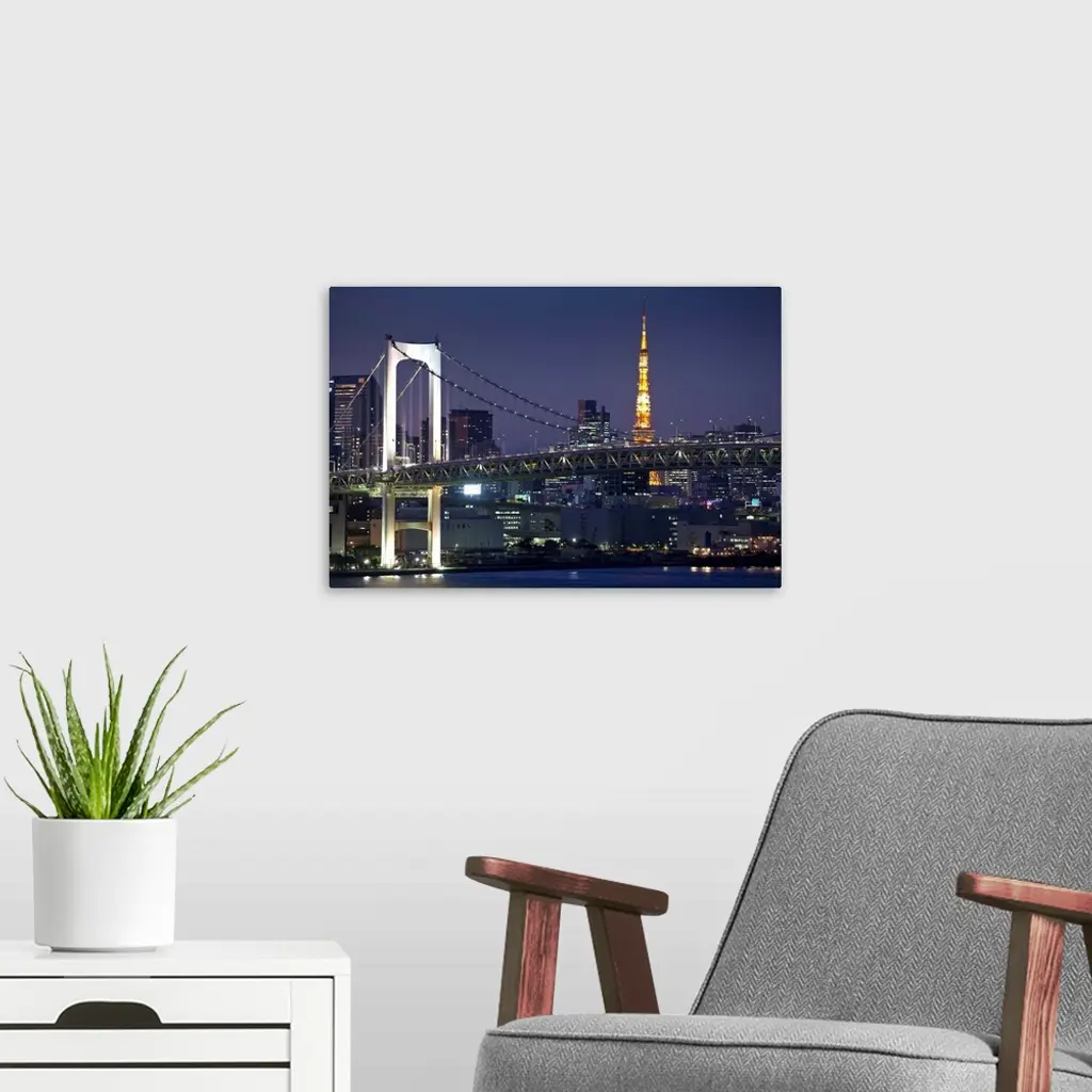 Rainbow bridge and Tokyo Bay from Odaiba, Tokyo, Japan wall art for home and office decor. Discover canvas art prints, photos, mural, big canvas art and framed wall art in GreatBigCanvas.com's varied collections.