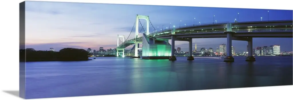 Rainbow bridge with reflection at night. wall art for home and office decor. Discover canvas art prints, photos, mural, big canvas art and framed wall art in GreatBigCanvas.com's varied collections.