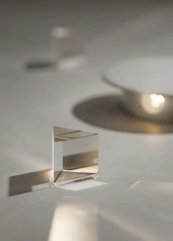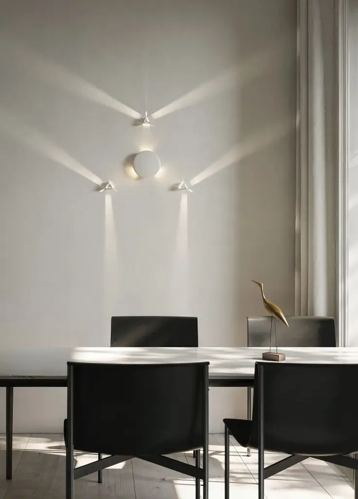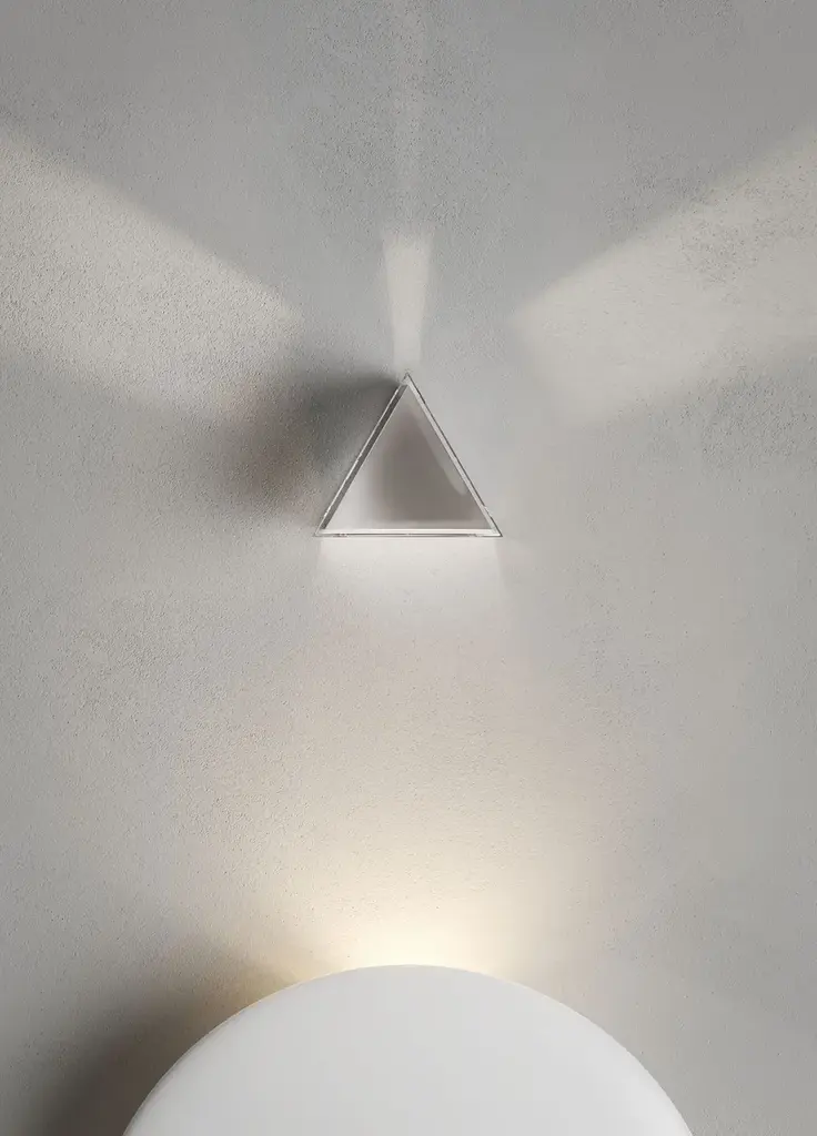 Rainbow is a ceiling lamp made of white resin.Rainbow plays with light and space. It is born from research on the physics of light refraction and the fascinating luminous and chromatic effects created by this phenomenon.With the Rainbow project, it is possible to modulate reflections, light, and shadow to enrich the environment in which it is placed. Thanks to the refraction prisms, Rainbow emits beams of light that spread in various directions, creating dynamic patterns on walls, ceilings, and floors, able to beautify and characterize the surrounding space.The final effect depends on the arrangement of the lamp and the angle at which the prism is positioned relative to the light source. Each lamp is unique, unrepeatable, and thus becomes not just a source of light, but a decorative element that visually enriches the environment, transforming it into a place where light itself becomes a work of art.Specifications:Optional: power supply included / cristal excluded AC323ABINTElectrical device: 3 x (max 2,9W LED, 471lm), 350mA 3000KIP Rate: IP20Certification: IEC 60598-1:2020, EN 60598-1:2021