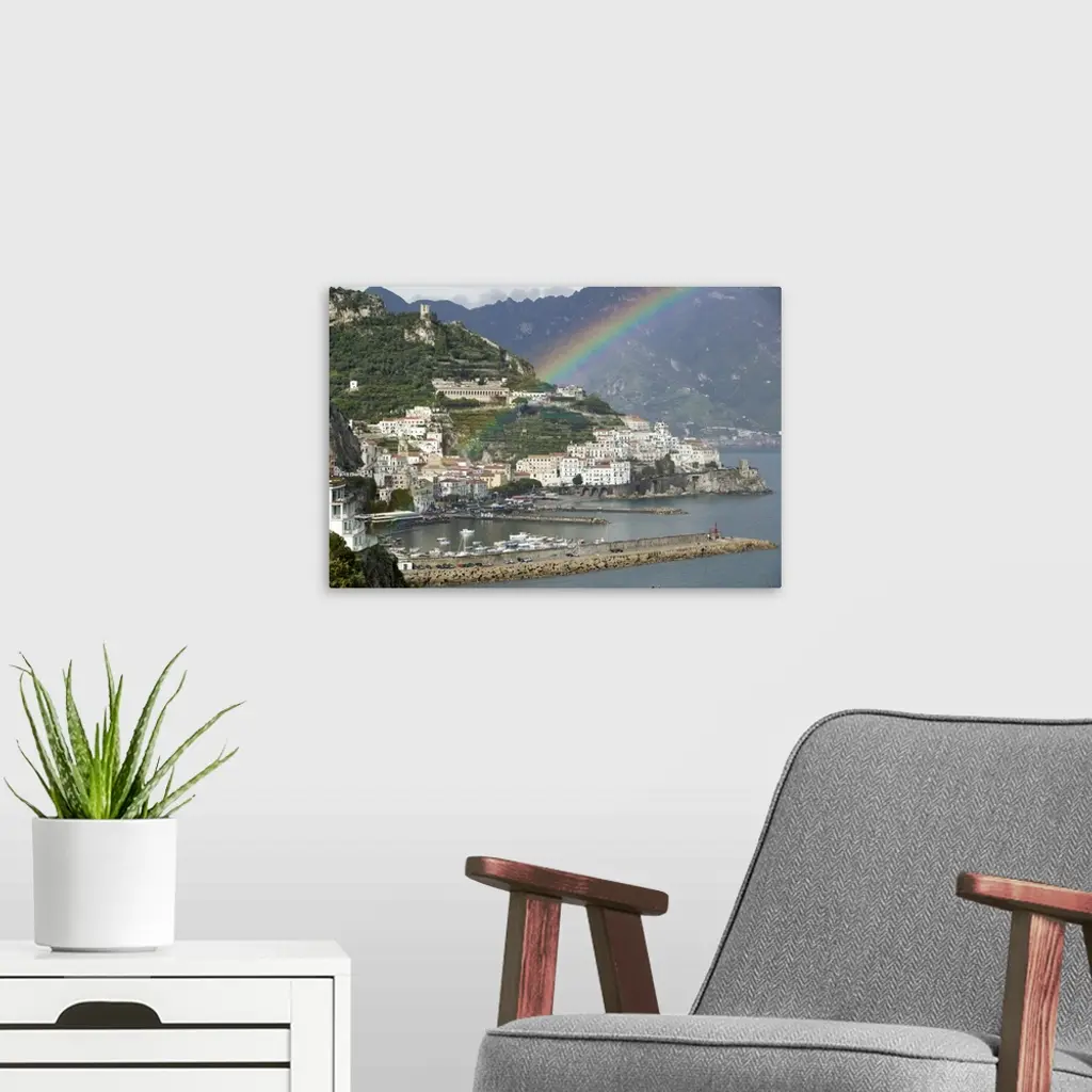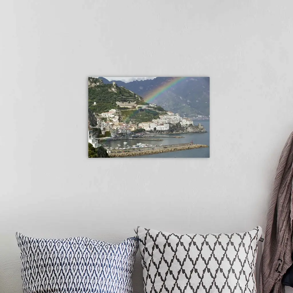 Rainbow Over A Town, Almafi, Amalfi Coast, Campania, Italy