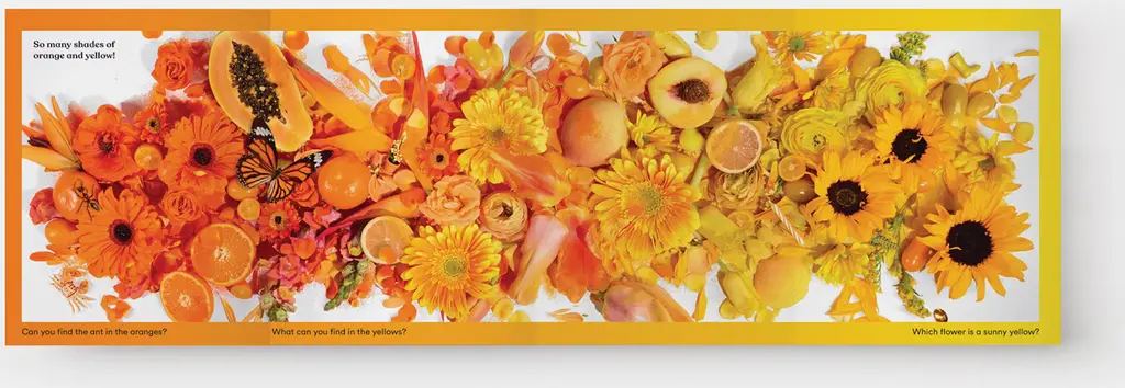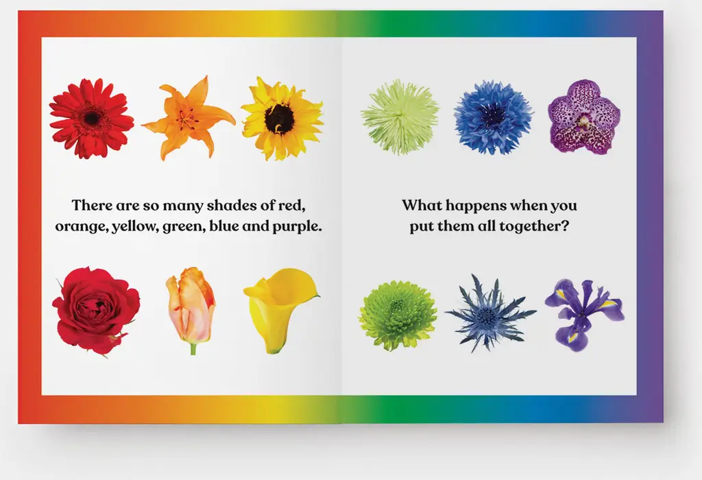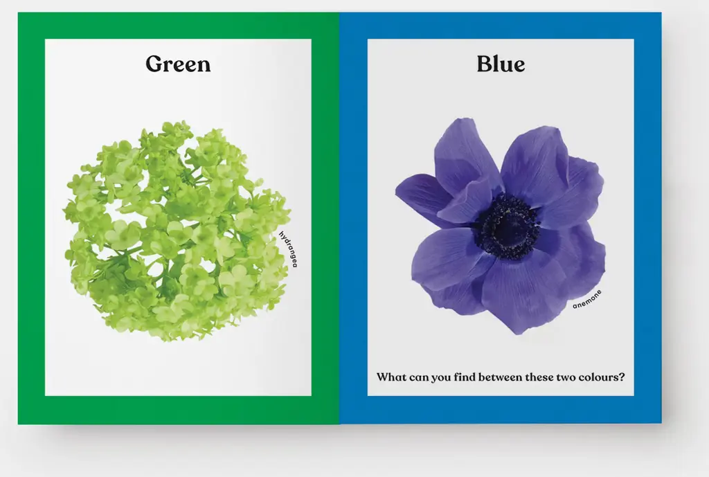 This unique book explores the enormous variety of shades within colors, going far beyond the basic hues that are usually introduced to children in early concept books. This board book showcases seven stunning floral arrangements, with a flower key at the back of the book, and clever fold-out pages as well as search-and-find prompts for interactivity.