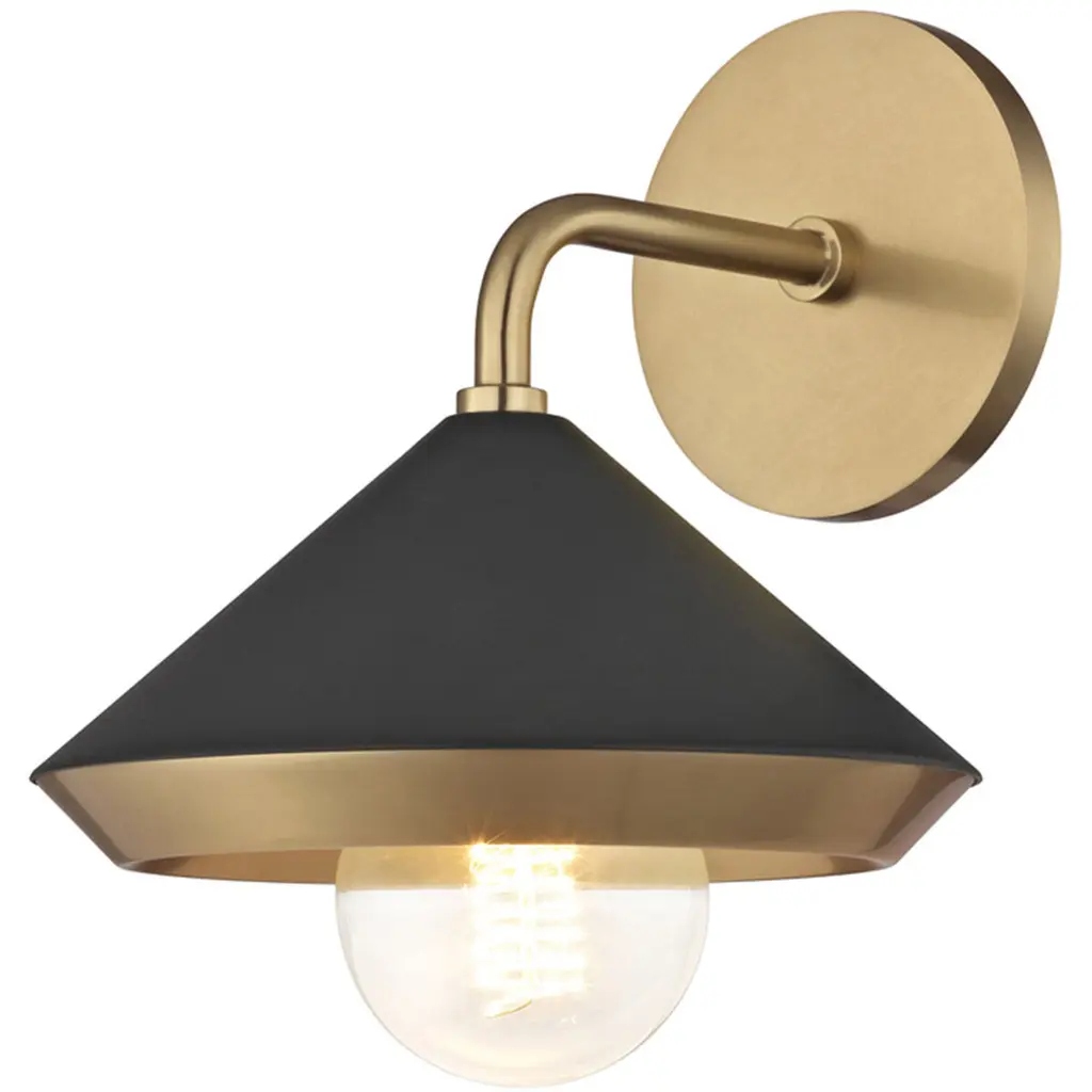 Classic and contemporary, Rainier softens the classic conical sconce by finishing a flared shade with a curve of frosted glass to create a teardrop-like silhouette. The high-contrast pairing of the burnished brass-finished fixture with the bright white milk glass intrigues. We love the wall light offering softly diffused illumination-and a touch of understated glam-flanking a bookcase, doorway or bathroom mirror.